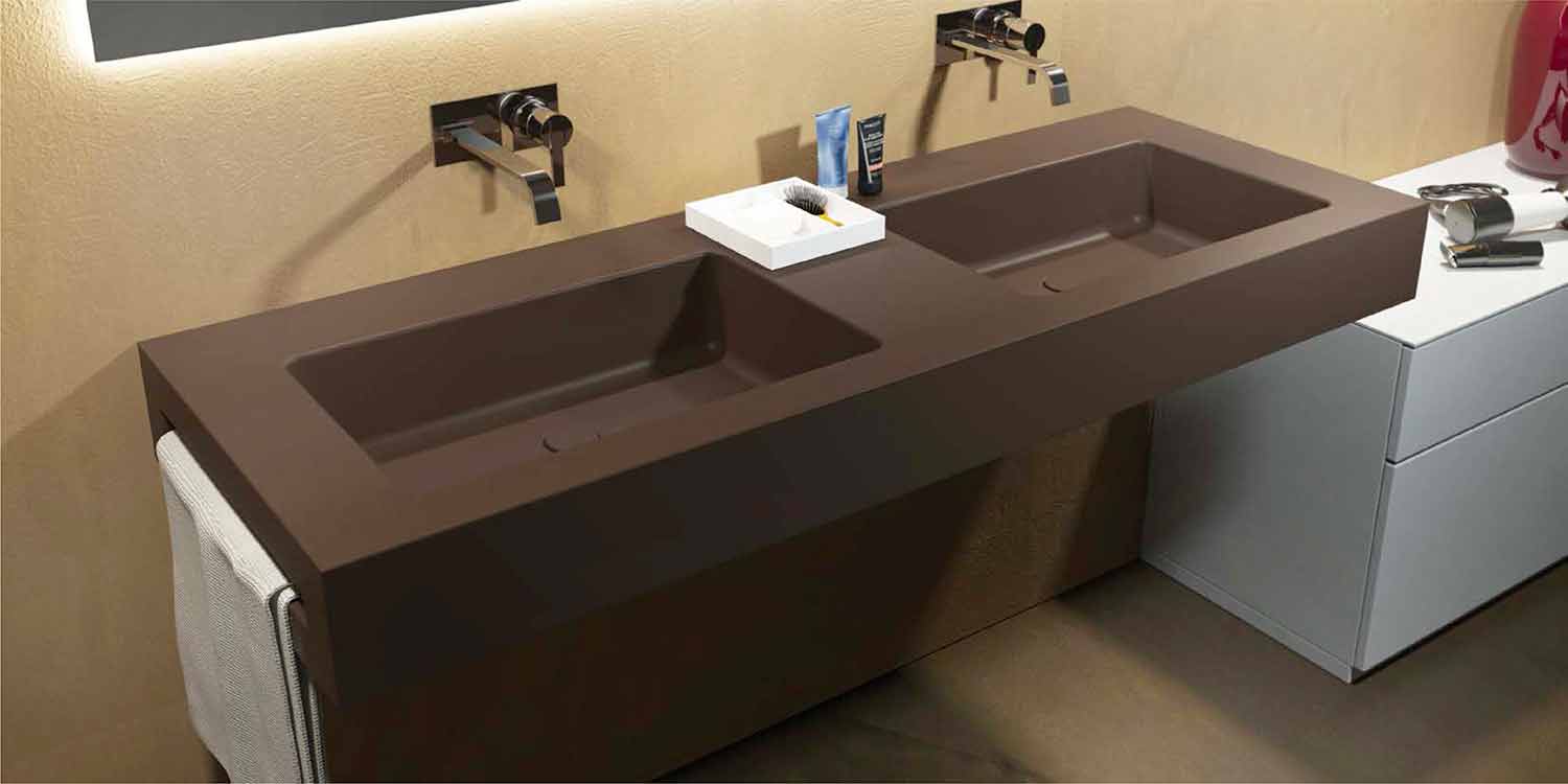 Ruffano doppio is an integrated system composed of a monolithic material top that integrates the washbasins, can be installed on any type of base or be left suspended in this way giving your bathroom an essential design.