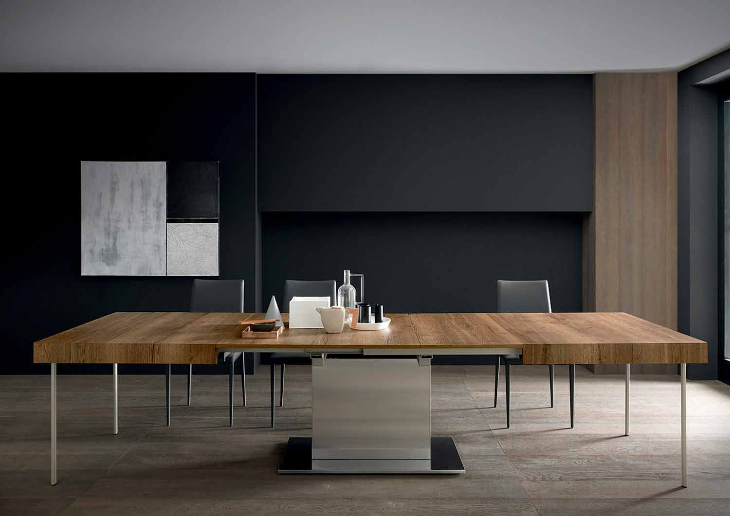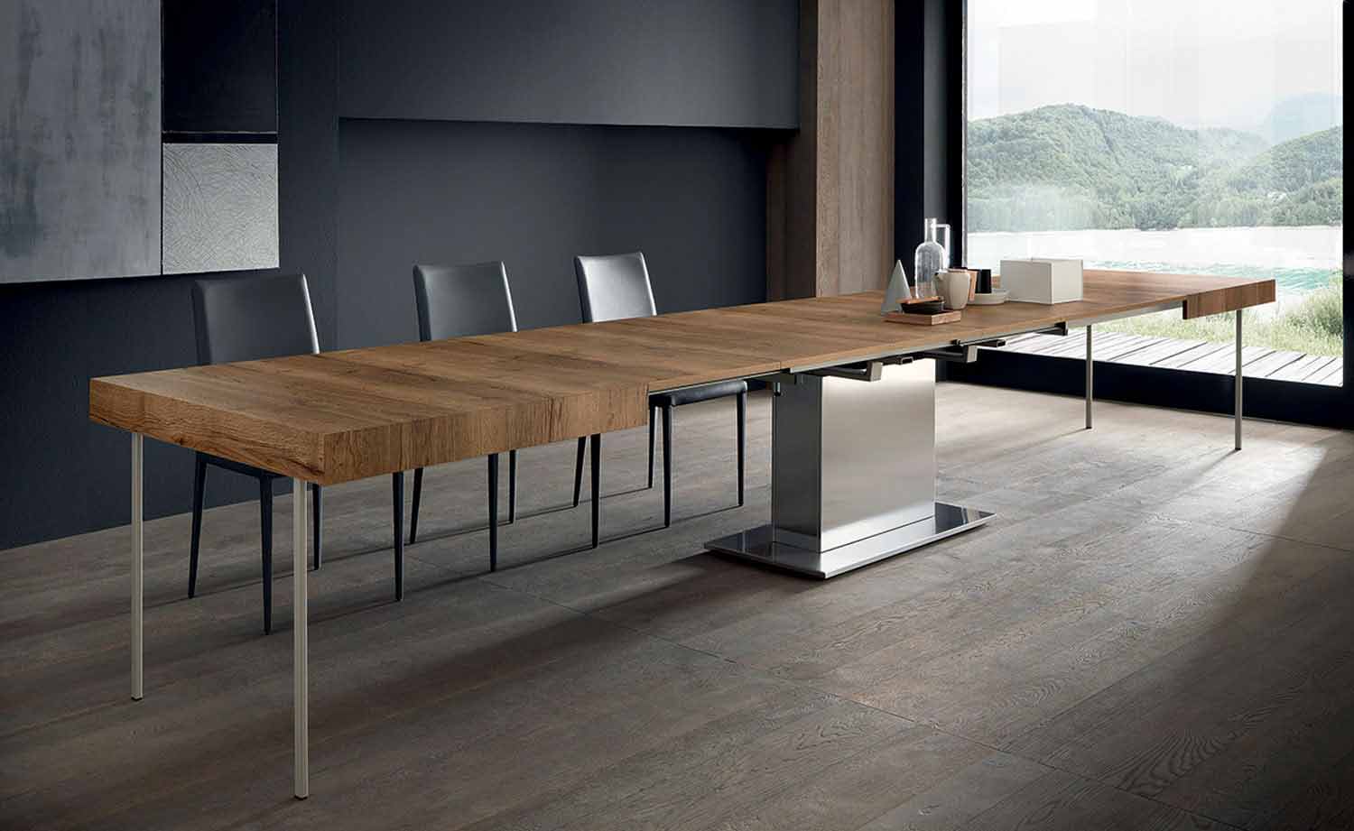 This extendable table is outlined by a small and discreet design for the living room version, but which knows how to amaze and give great emotions in the open version. Its peculiar feature, in fact, consists in being able to extend for a total of 480 meters, to really host all the guests you want.