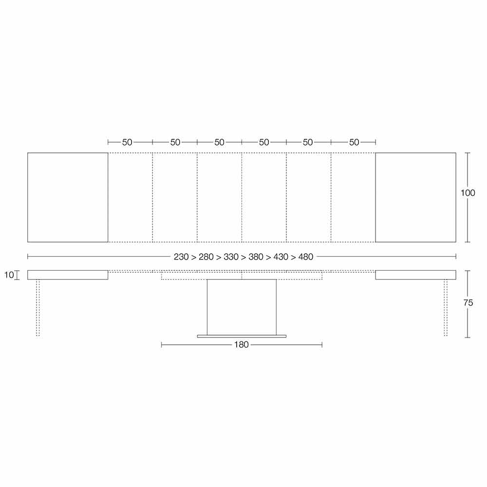 The top can be extended with 6 internal extensions of a length of 50 cm each, with folding support legs.