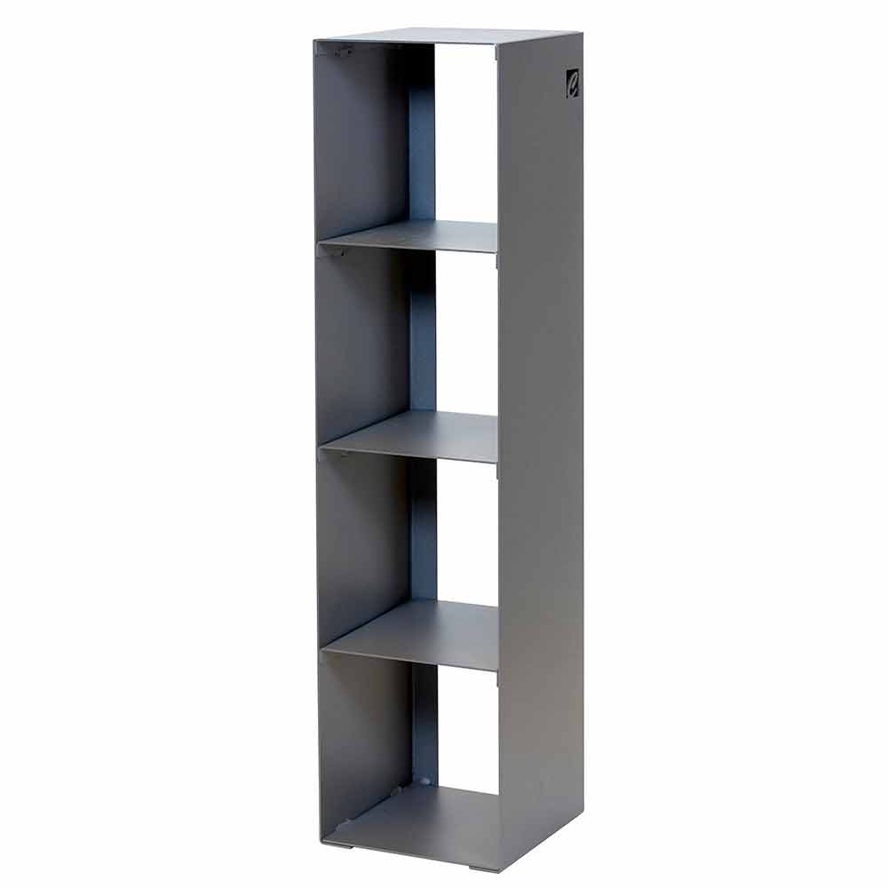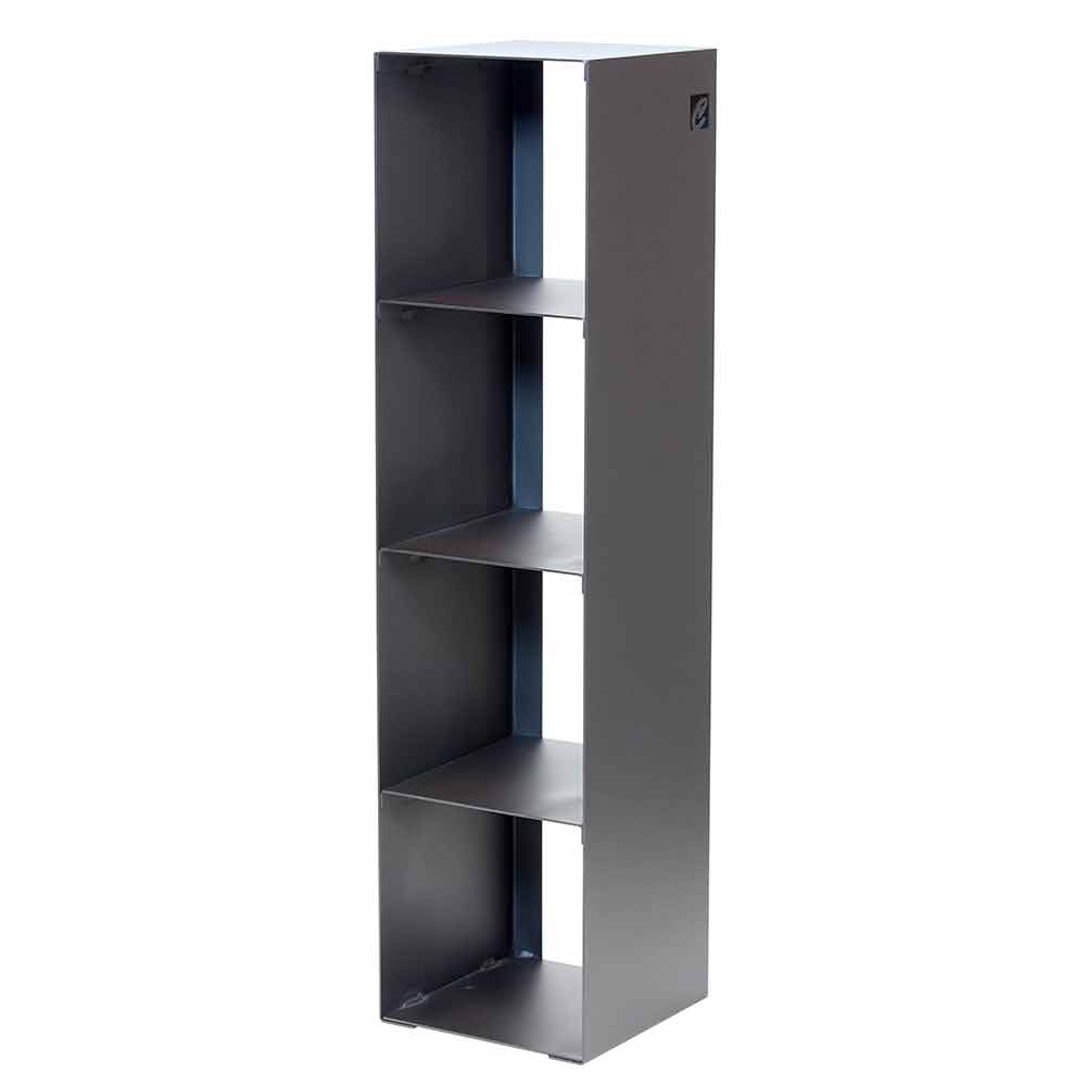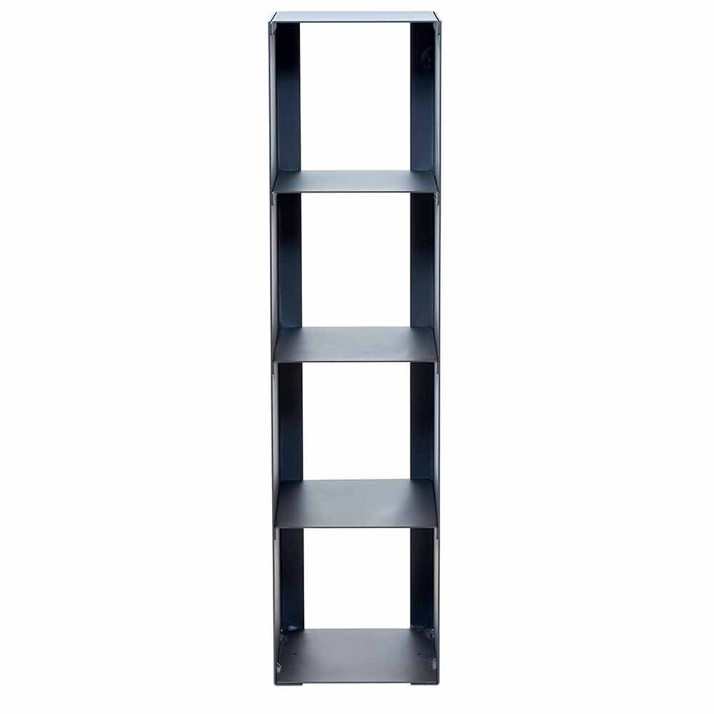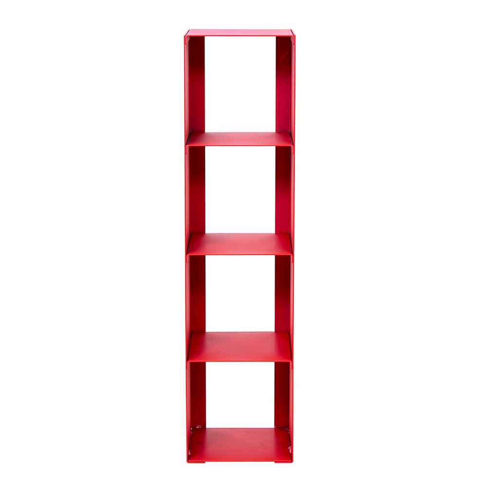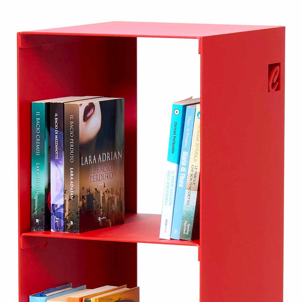 Modern style floor bookcase with black, red, white or gray painted iron shelves; made in Italy.