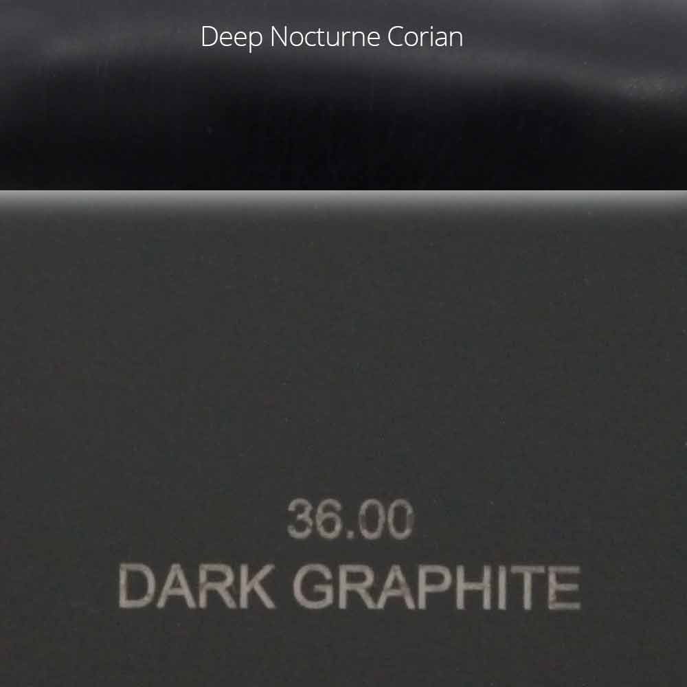 - Dark Graphite + Deep Nocturne Corian®: matt cold dark gray finish with elements in black DuPont ⢠Corian®;