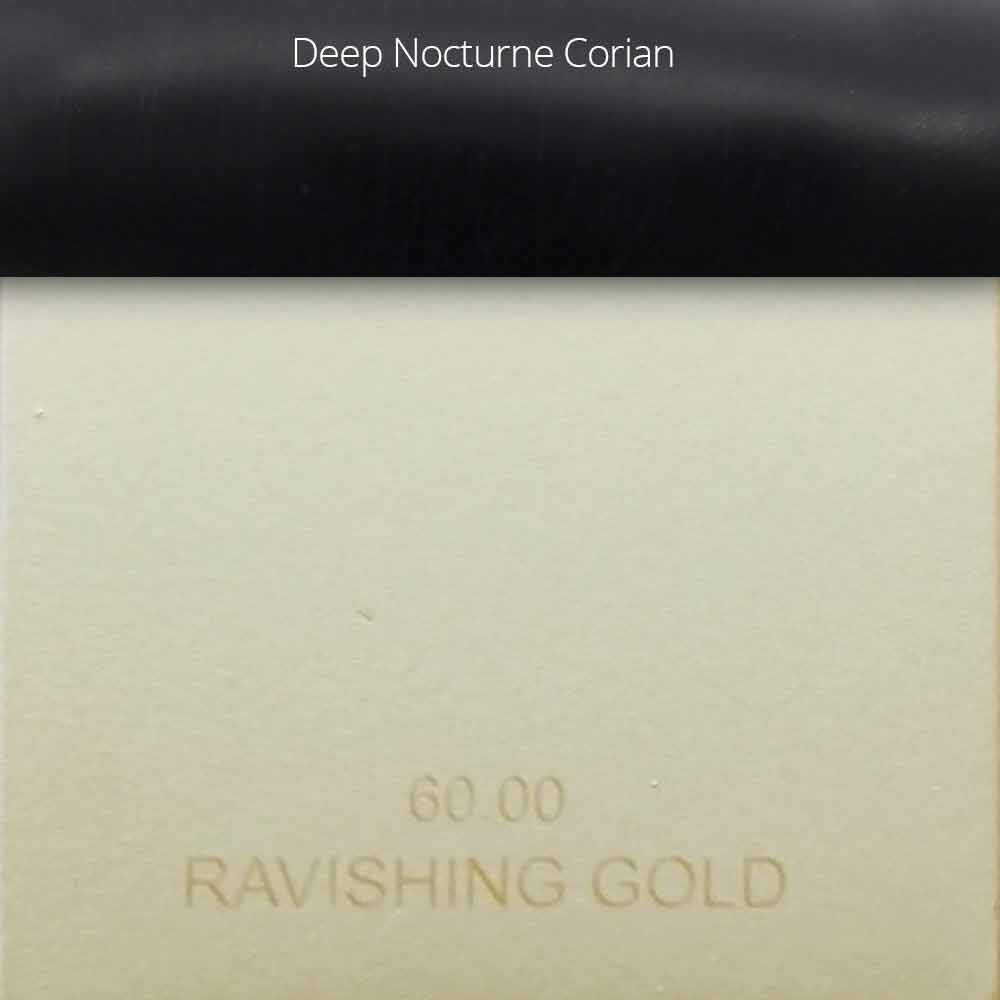 - Ravishing Gold + Deep Nocturne Corian®: matt gold metallic finish with elements in black DuPont ⢠Corian®;