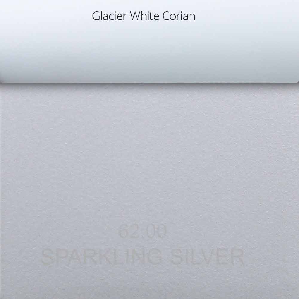- Sparkling Silver + Glacier White Corian®: matt silver metallic finish with white DuPont ⢠Corian® elements;