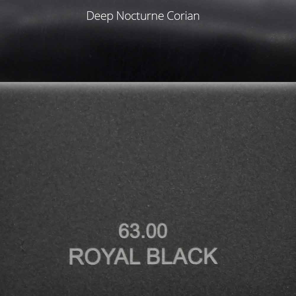 - Royal Black + Deep Nocturne Corian®: matt gunmetal metallic finish with elements in black DuPont ⢠Corian®;