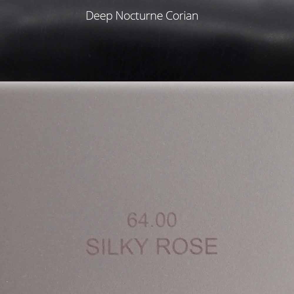 - Silky Rose + Deep Nocturne Corian®: matte pink metallic finish with black DuPont ⢠Corian® elements;