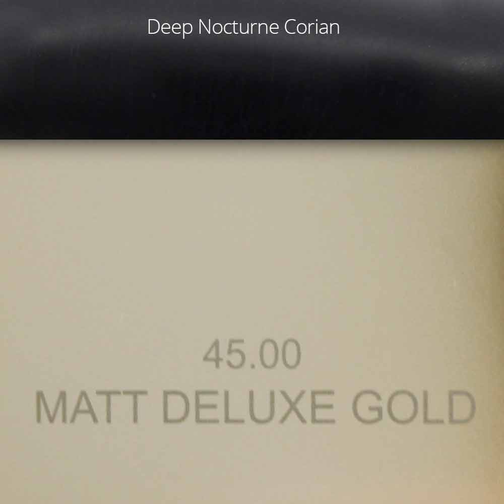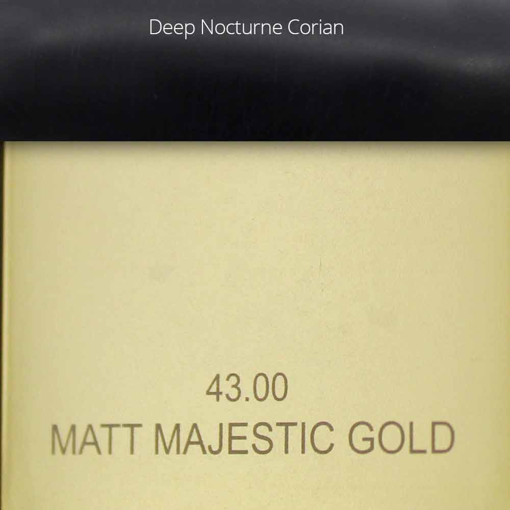 - Matt Majestic Gold + Deep Nocturne Corian®: matt gold 13 finish with elements in black DuPont ⢠Corian®;