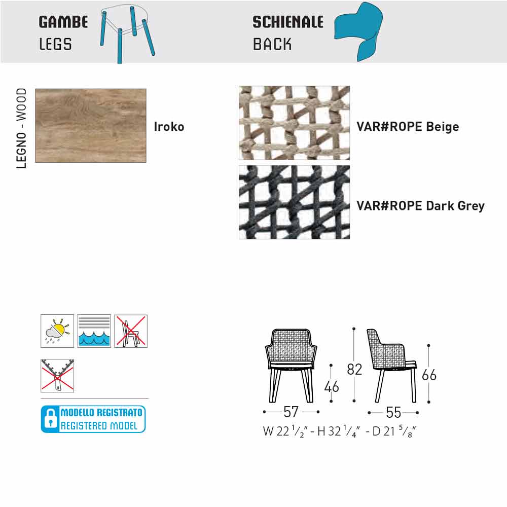 It also comes with solid iroko wood legs and a seat upholstered in fabric with a polypropylene seat structure.