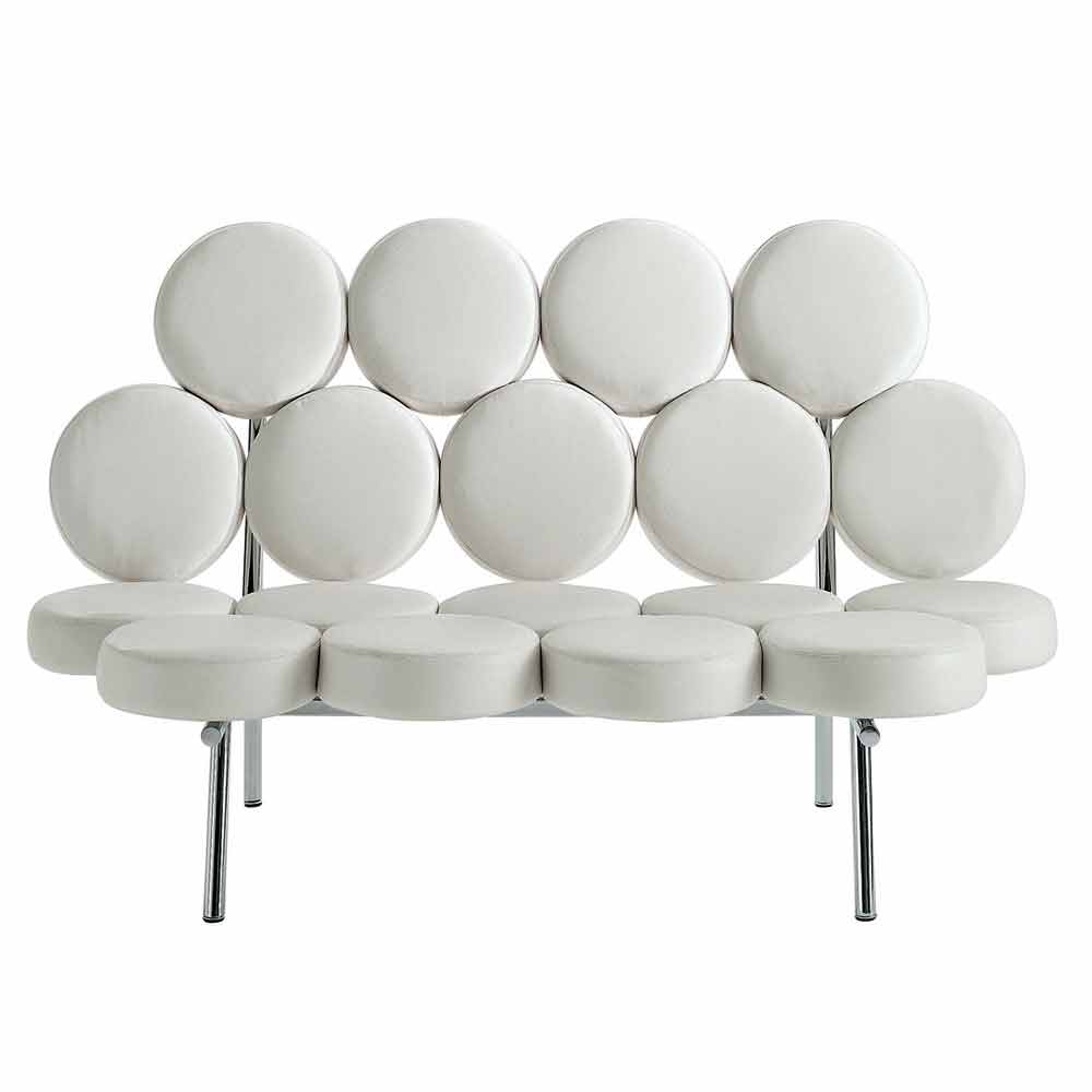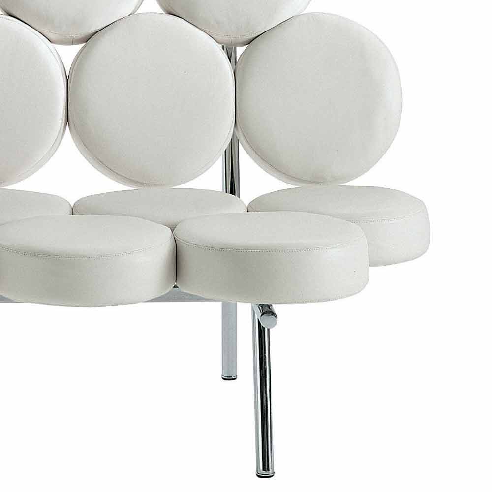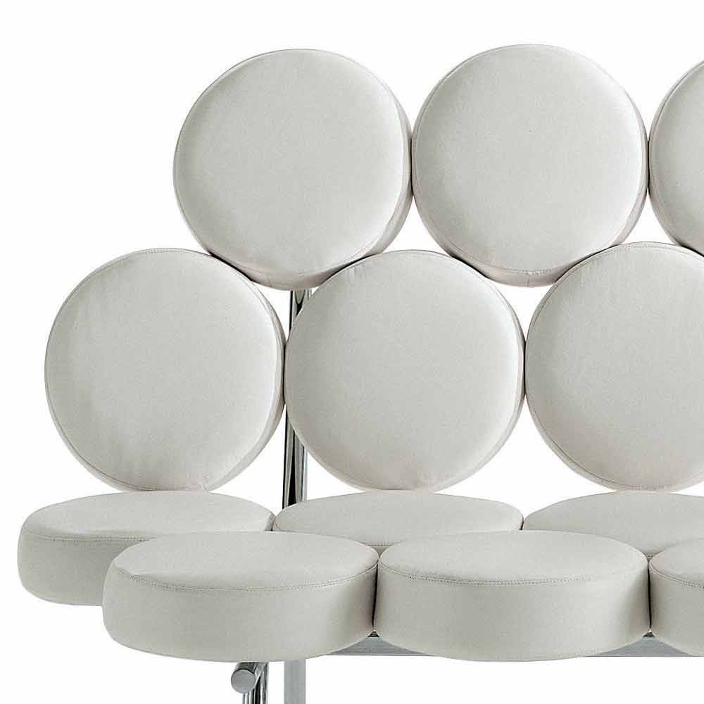 Modern living room sofamade in Italy with chromed steel structure, seat and back in polyurethane rubber and dacron with external leather covering. An idea of furniture that blends in itself the elegance of the leather and the functionality of its conformation, offering a comfortable and at the same time original seat and an original style, ideal for those looking for unique items that can enrich their living area with a creative touch . Its eccentric design emphasizes its personality, making it also an original decorative element capable of characterizing and making every space unique, of which it becomes the undisputed protagonist.