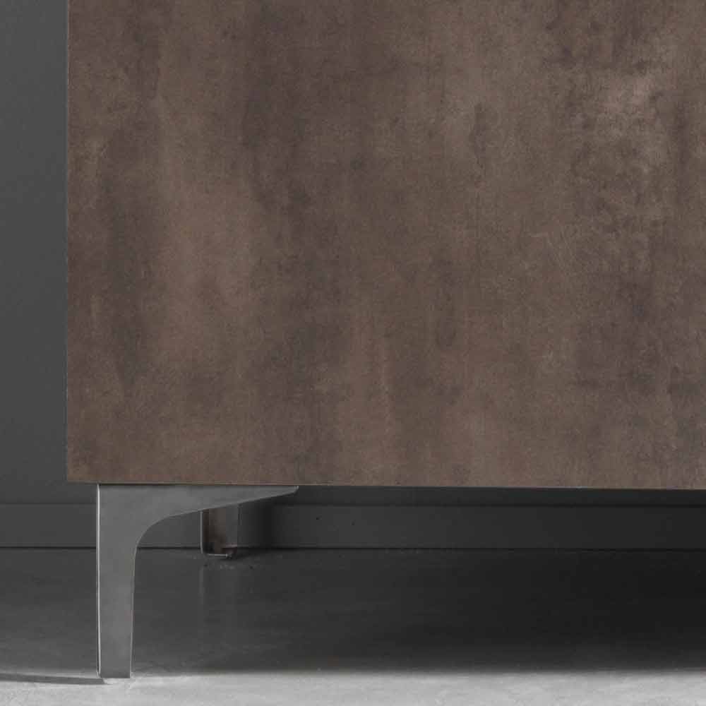 Living room cupboard with three doors, modern design with bronze or grey melamine wood made in Italy.