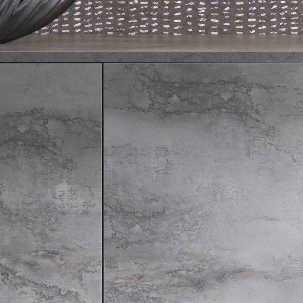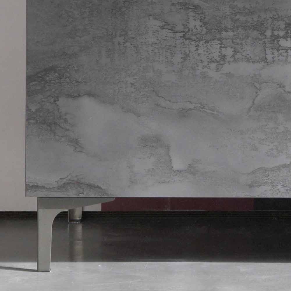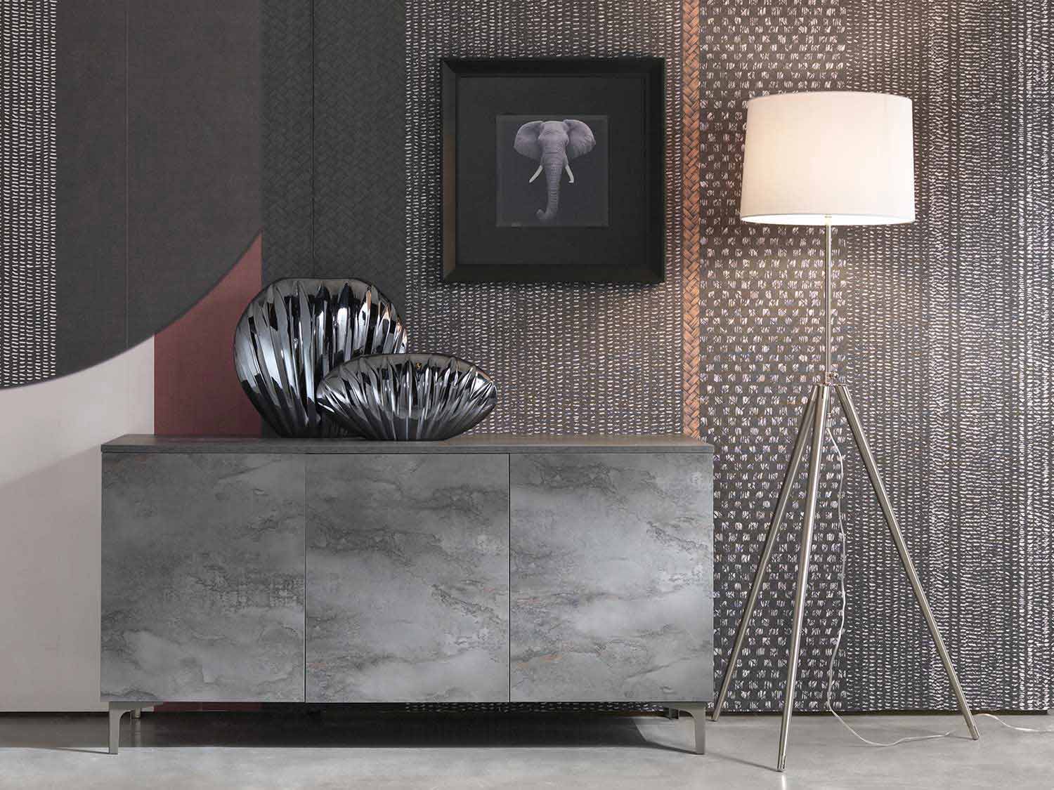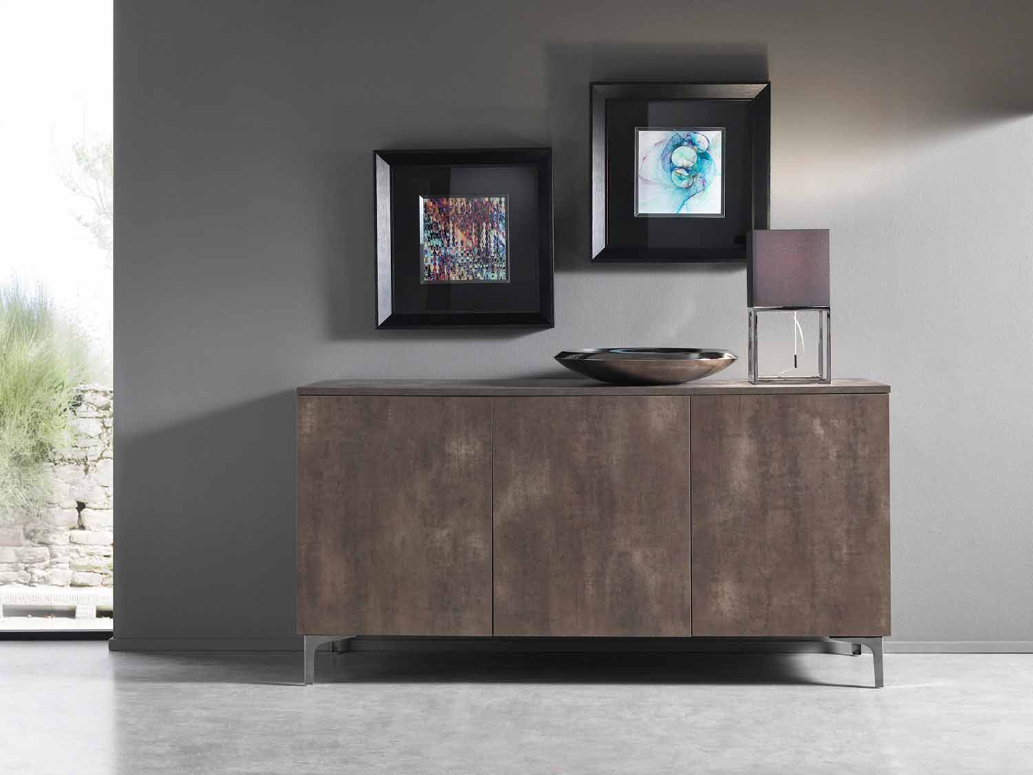 The living room cupboard Clemente is ideal because it has all the characteristics you're looking for: handcraftedin Italy with melamine wood with three doors, amortised hingers and steel legs.