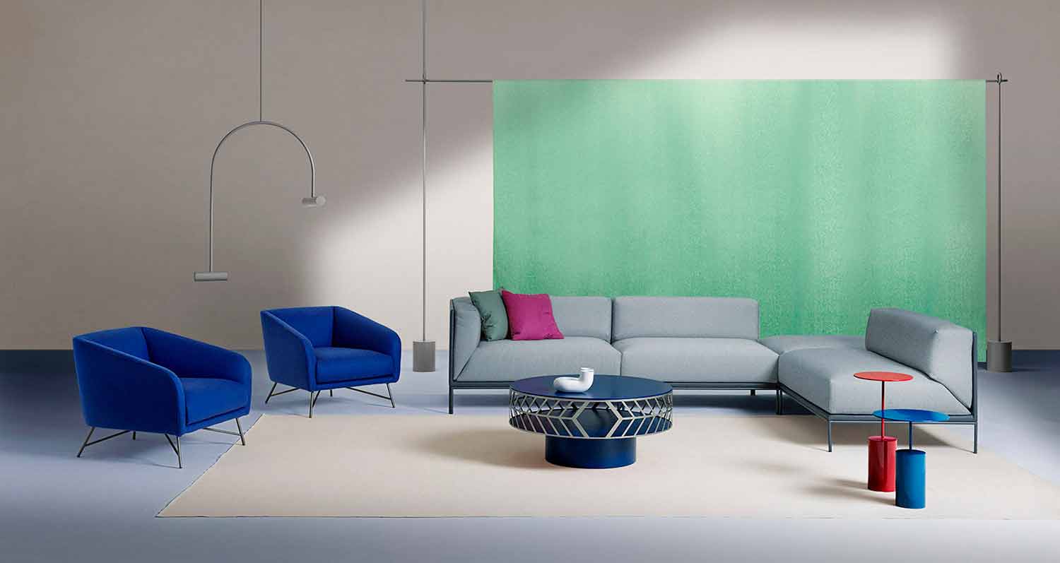 Living room table in colored MDF with steel ring with a modern and original design made in Italy.