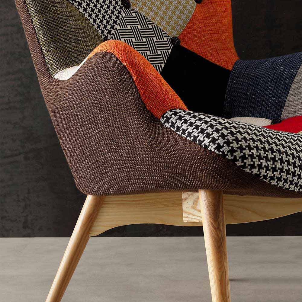 Multi coloured patchwork armchairs Veronica, solid wood legs.