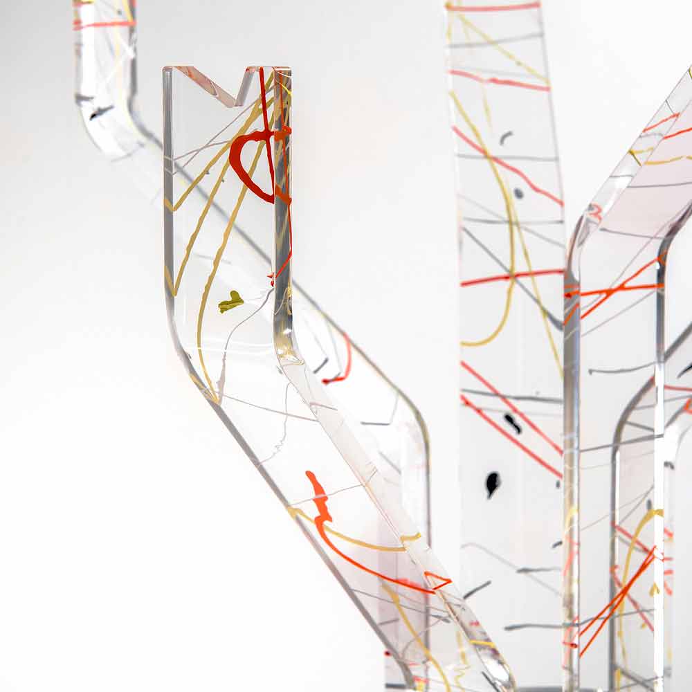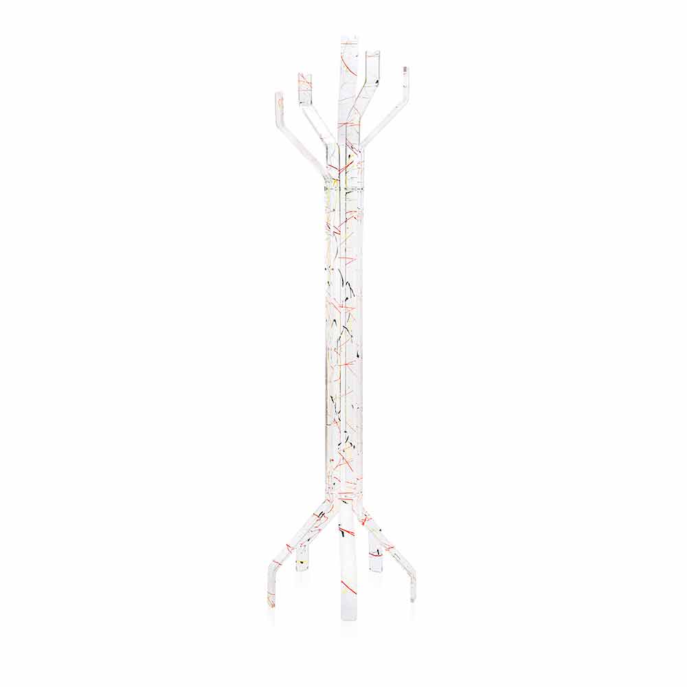 Andrea is a 5-arm asymmetrical coat hanger, made of 100% virgin polymer PMMA plexiglass with spray paint finishes making it multicolor.