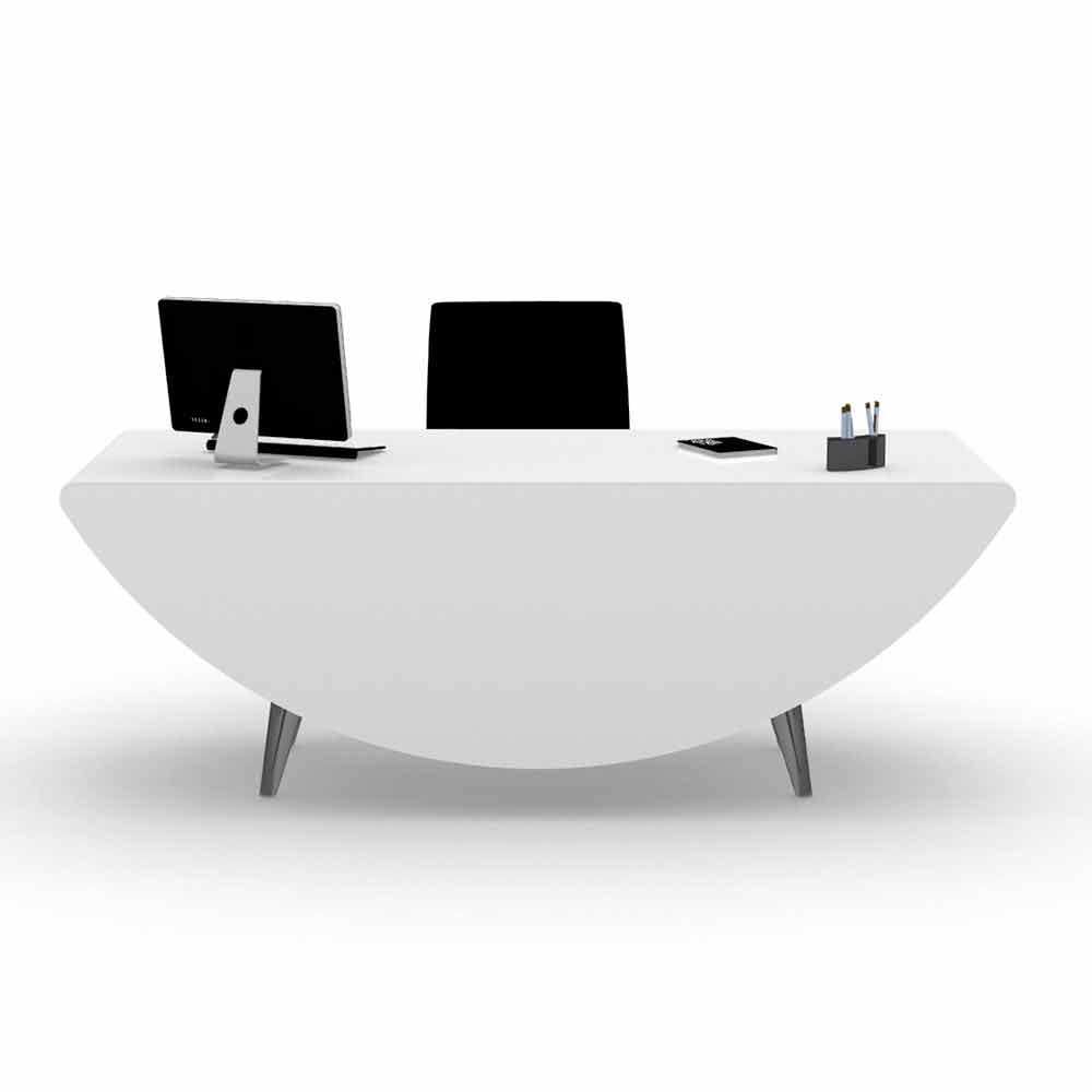 Milis is an amazing office desk that with his semimoon shape remind an alarm clock of 50's.