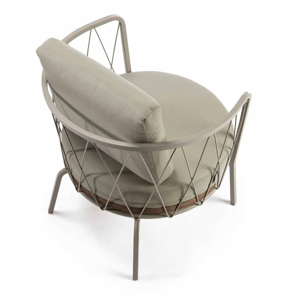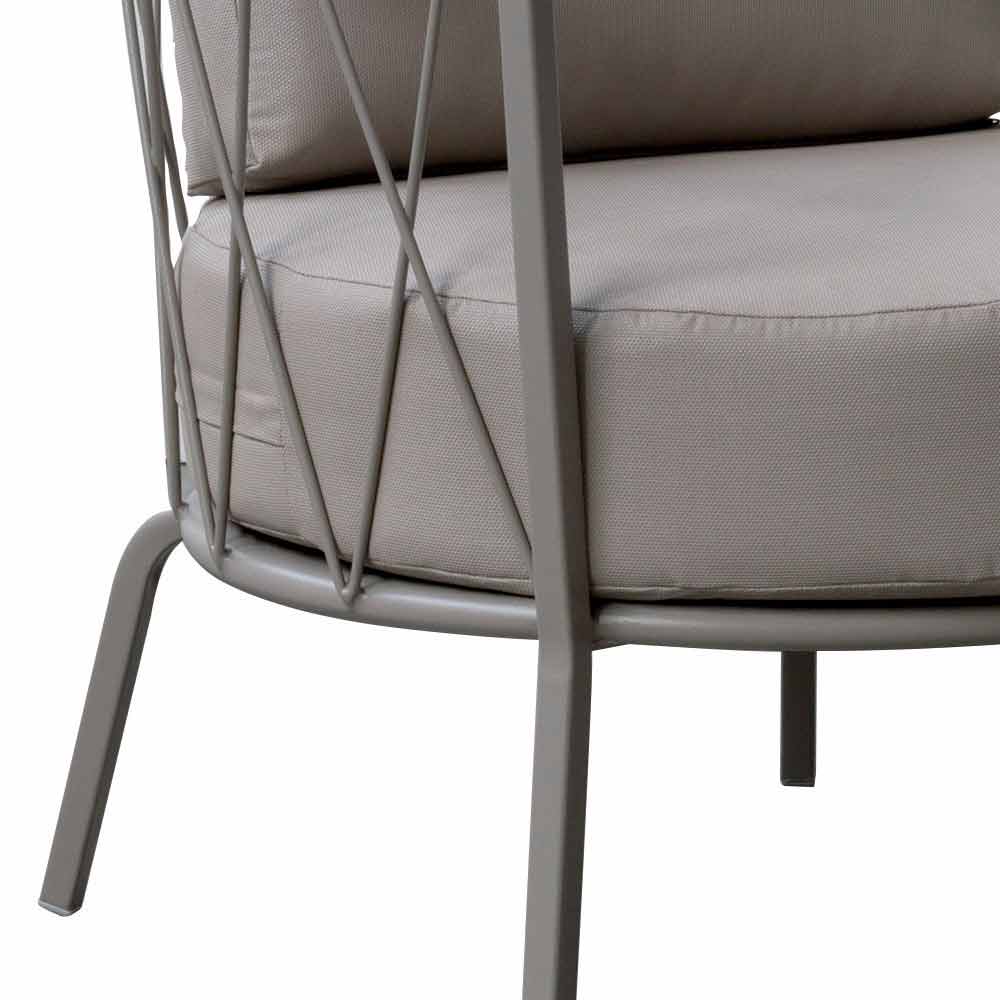 high comfort. Thanks to the modern design and the comfort of the cushions covered in stain, mold and light resistant 100% acrylic fabric, this armchair is ideal for private environments such as gardens and terraces, but also in bars and restaurants where they can give personality.