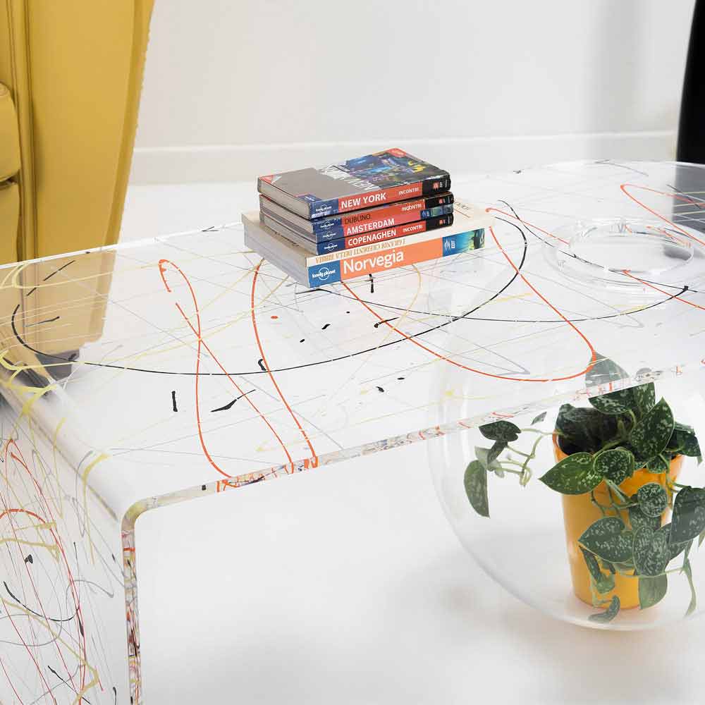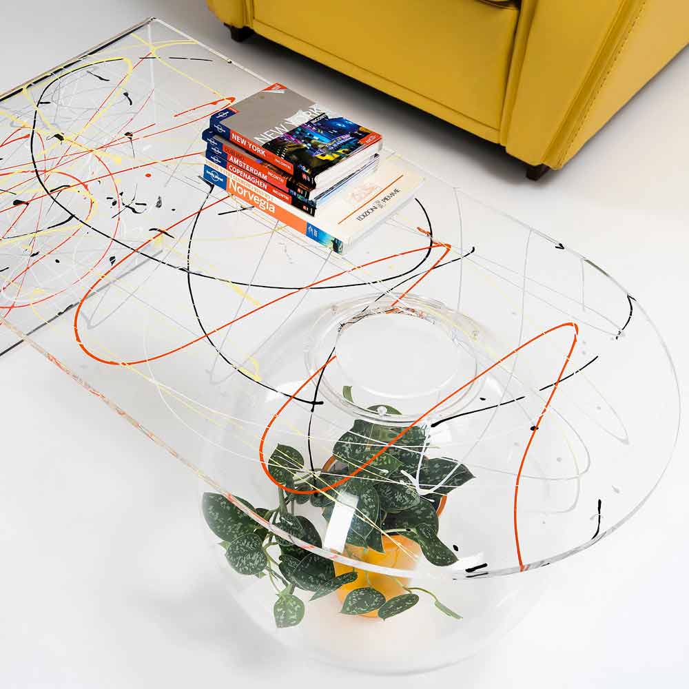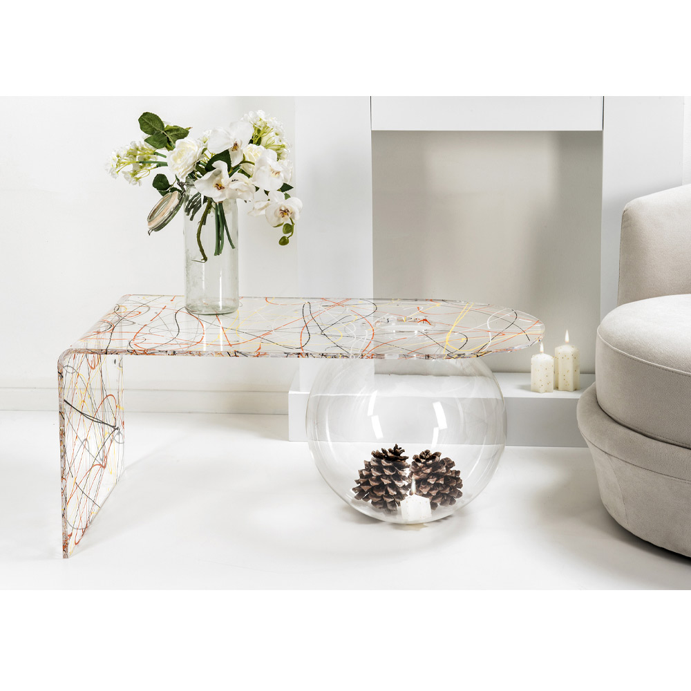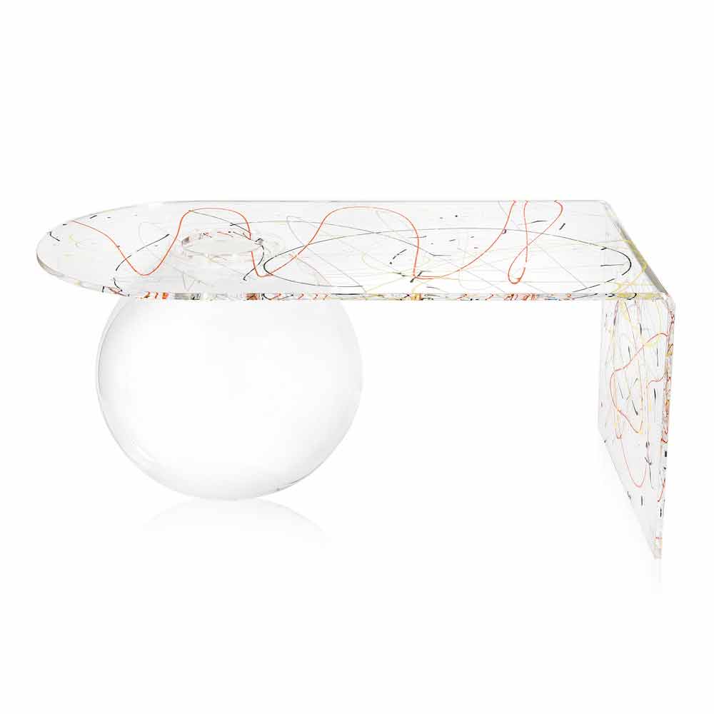 Bolly is a curved table handcrafted in Italy in 100% virgin polymer PMMA plexiglass, laser cut, thermoformed at high temperatures and assembled to a spherical structure that can be used as a flower vase, an aquarium or simply as a container.