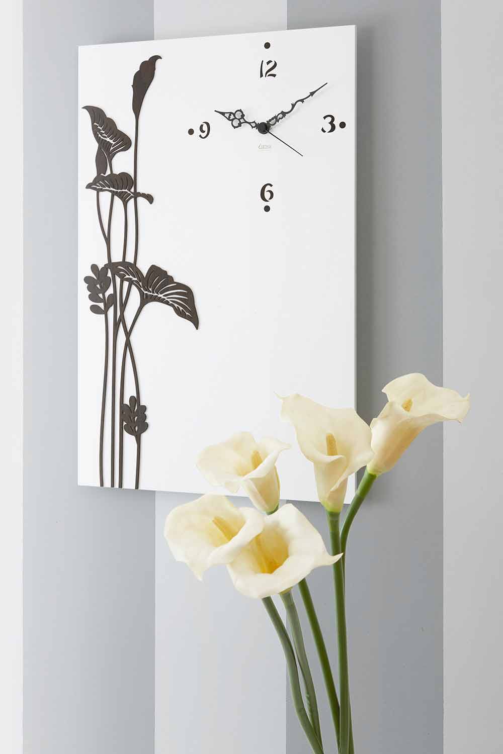 It is a rectangular clock with wooden applications , for a unique and design creation. The soft and elegant colors create a modern and refined style , easy to adapt to the environment.