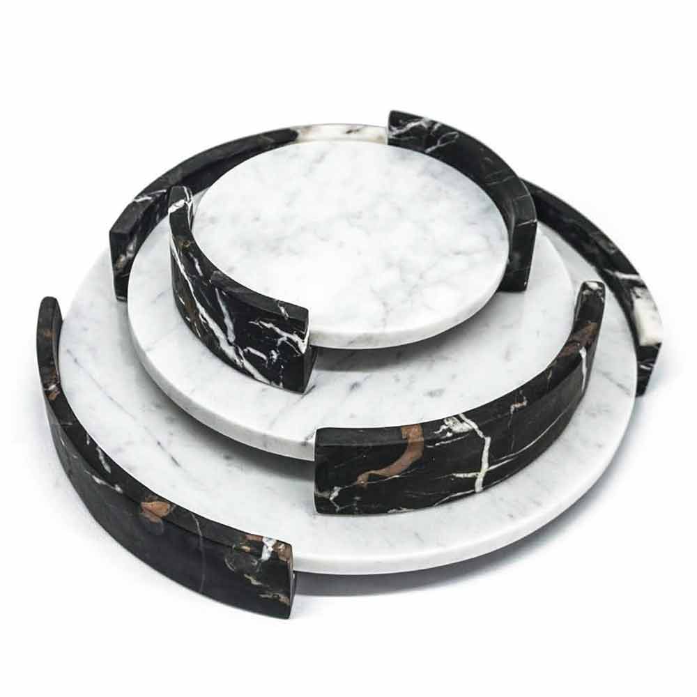 Round design tray made of high quality white Carrara marble Made in Italy.