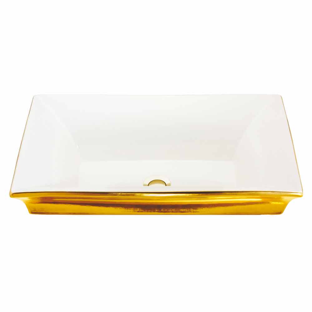 Semirecessed sink handmade in Italy in fire clay with shiny white insides and refined with 24k gold on the outside.