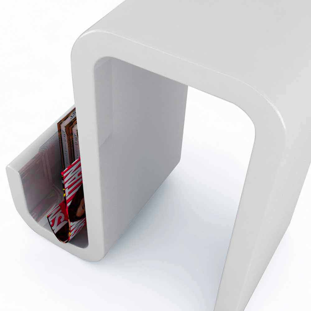The stool/magazine rack Elina, made of Solid Surface;, is a refined design object with a modern and sinuous line, designed for homes and public places, such as bars or waiting rooms.