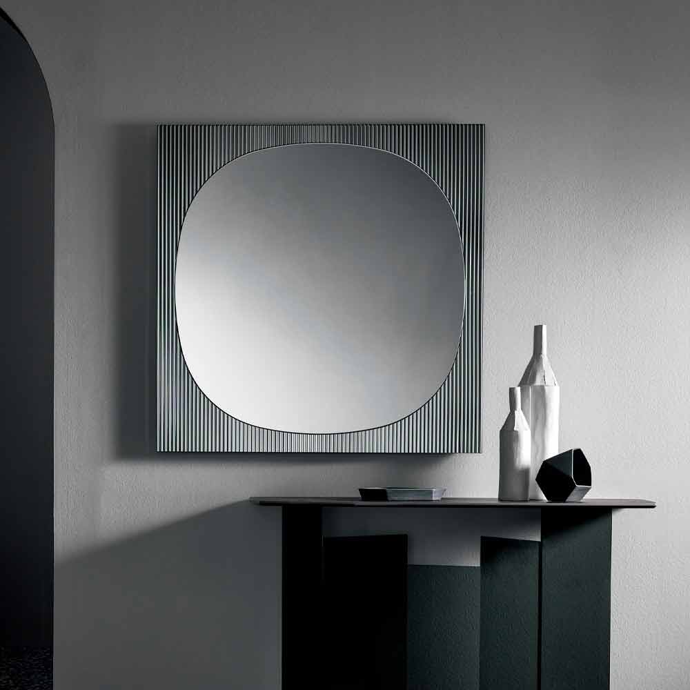 Modern style square wall mirror 100x100 cm with smokey glass, realized in Italy by hand.