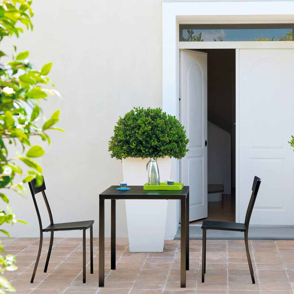 Stackable square table for outdoor in self-leveling and powder coated metal Made in Italy.