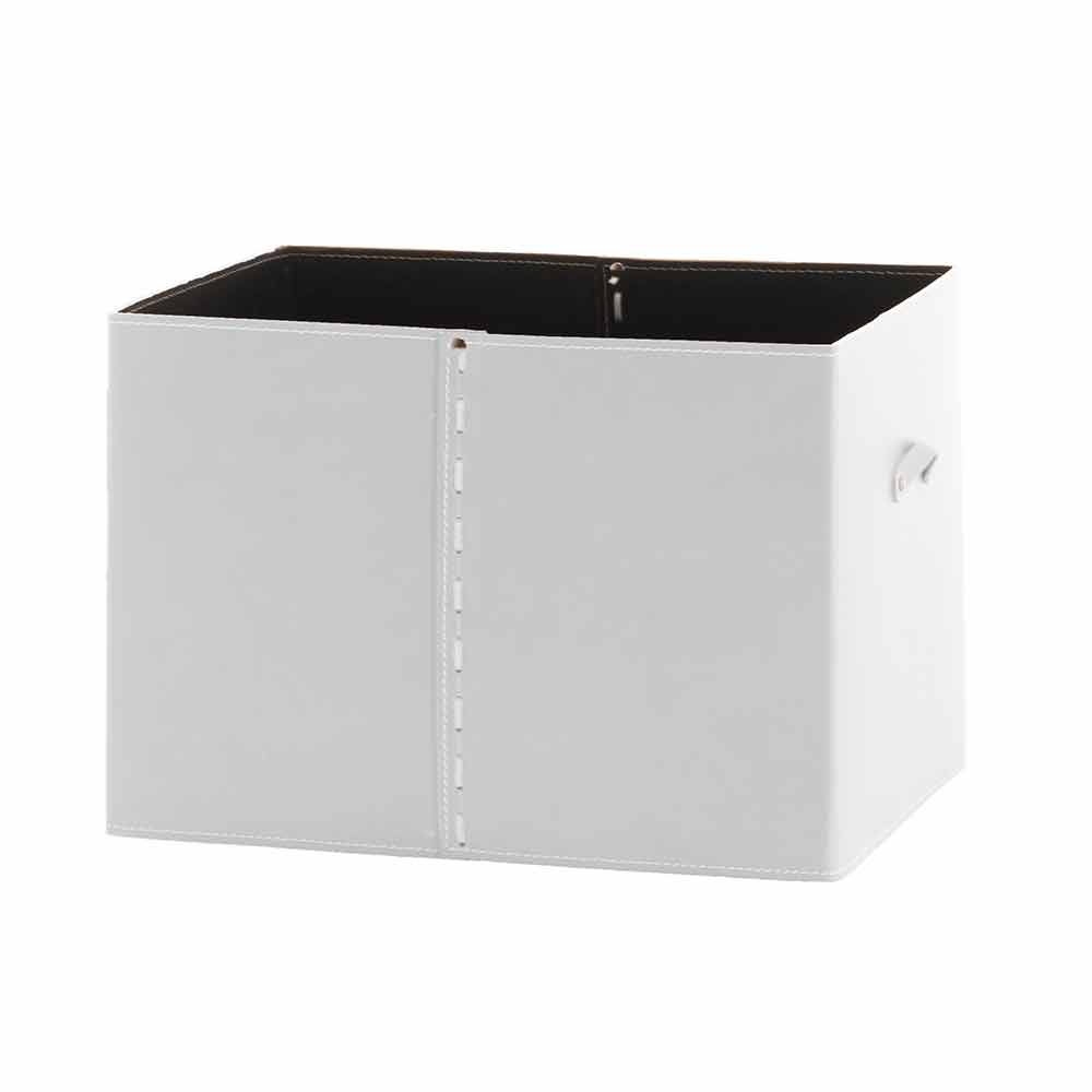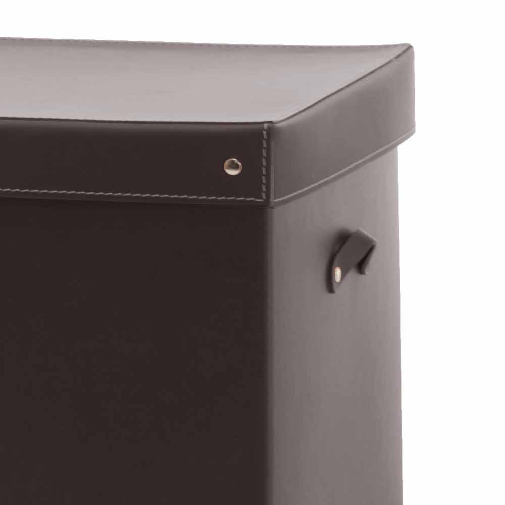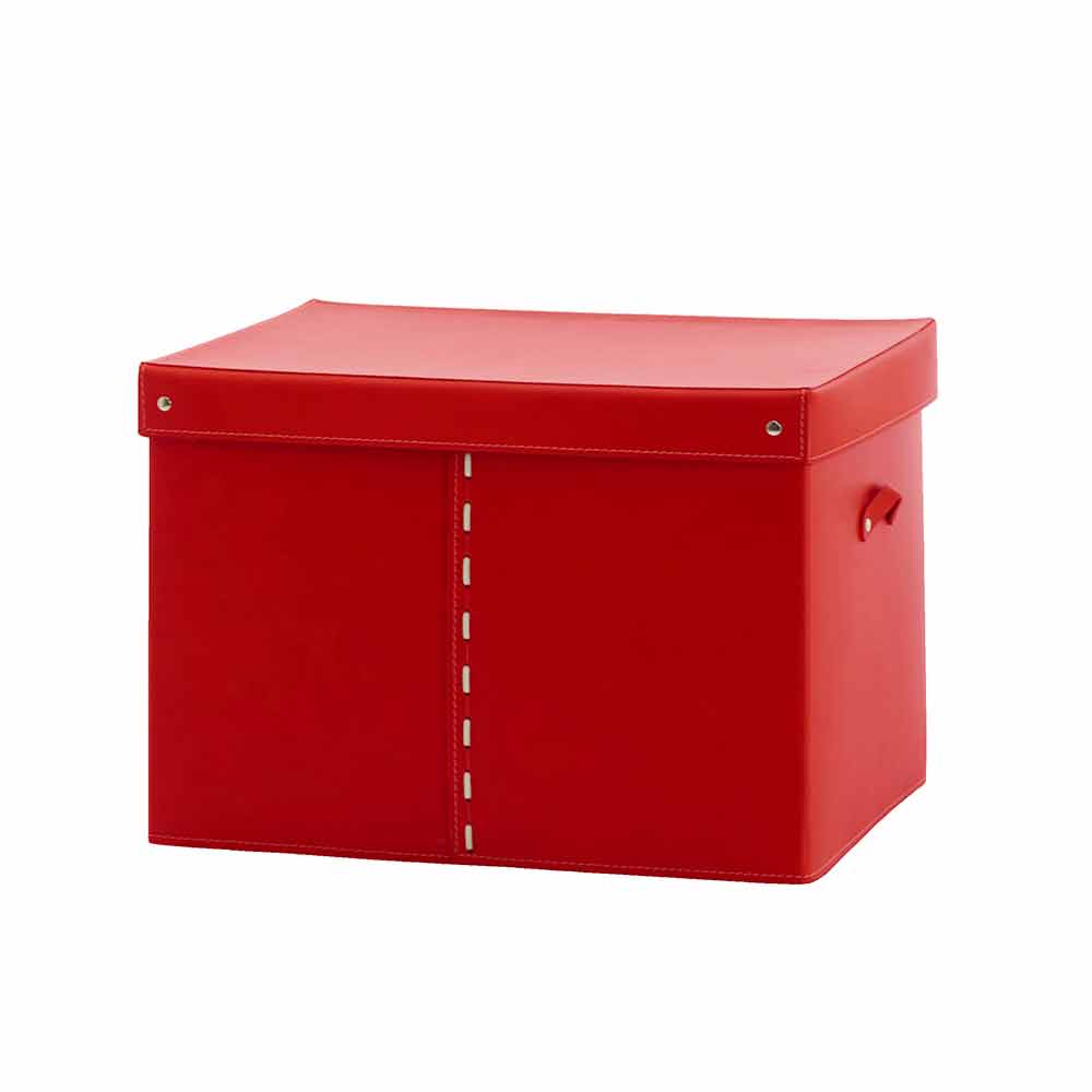 Modern design storage container handcrafted in Italy in colored regenerated leather.