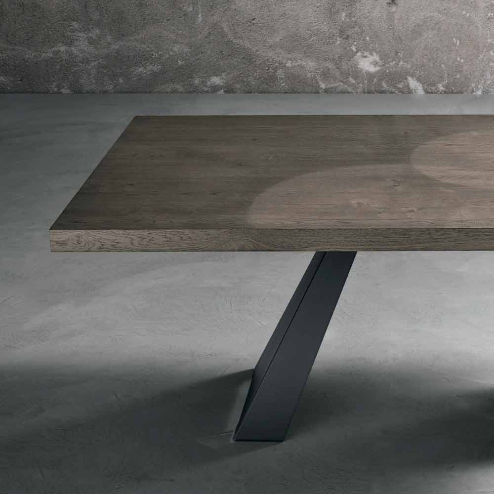 Dining table in veneered knotted oak wood made in Italy, Zerba