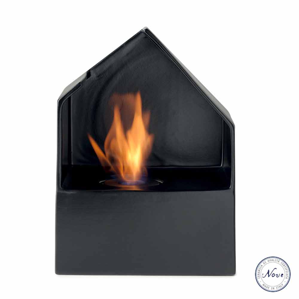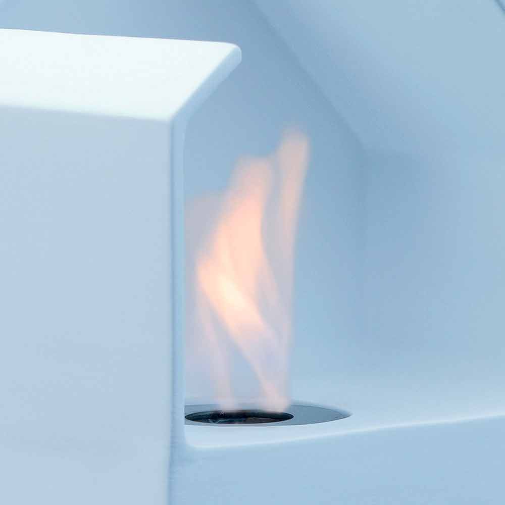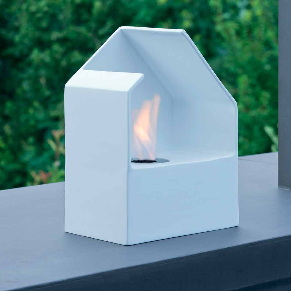 Modern tabletop bioethanol fireplace made of steel and ceramic Curtis