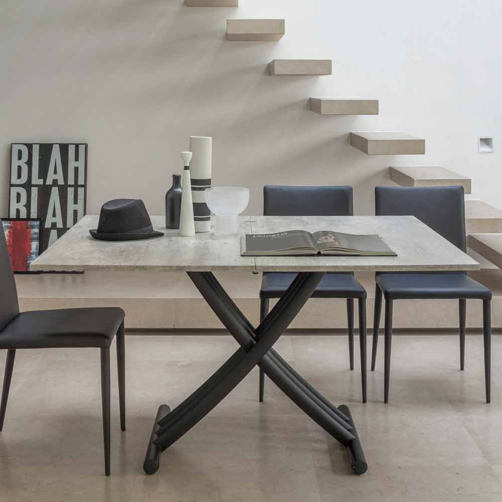 a dining table is characterized by the possibility of height adjustment from 22 cm to 77 cm thanks to a