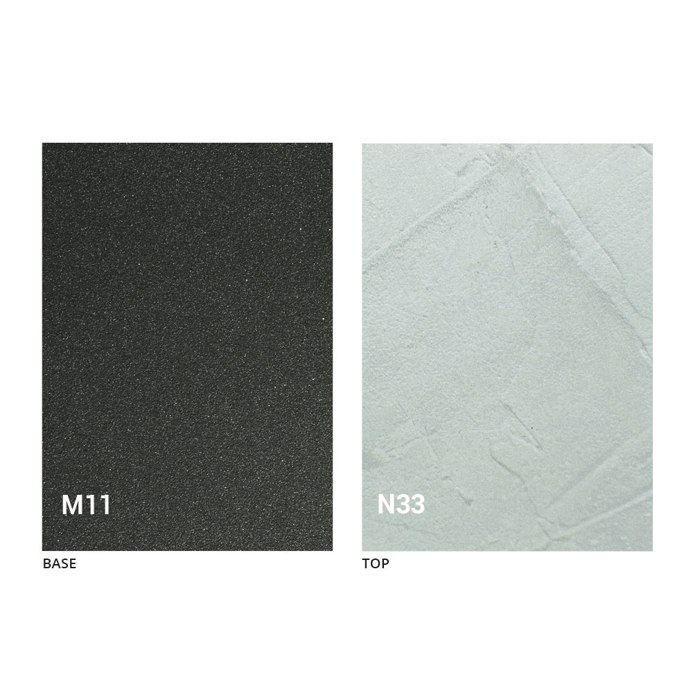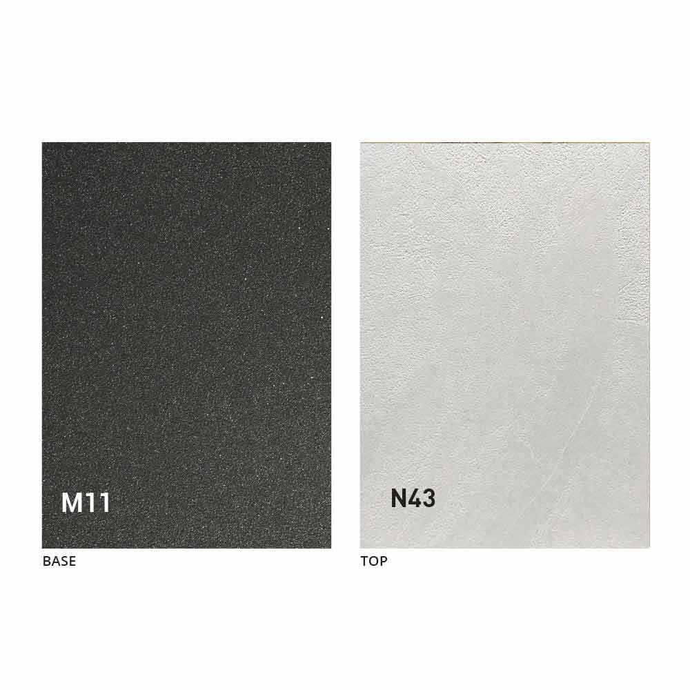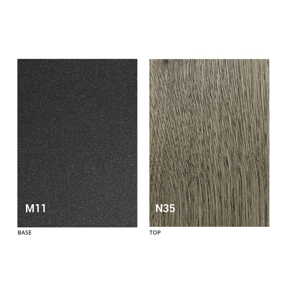 The top and base of the table can be customized with different materials and sample finishes or RAL lacquering. For information, contact us using the appropriate "