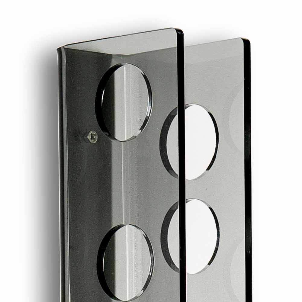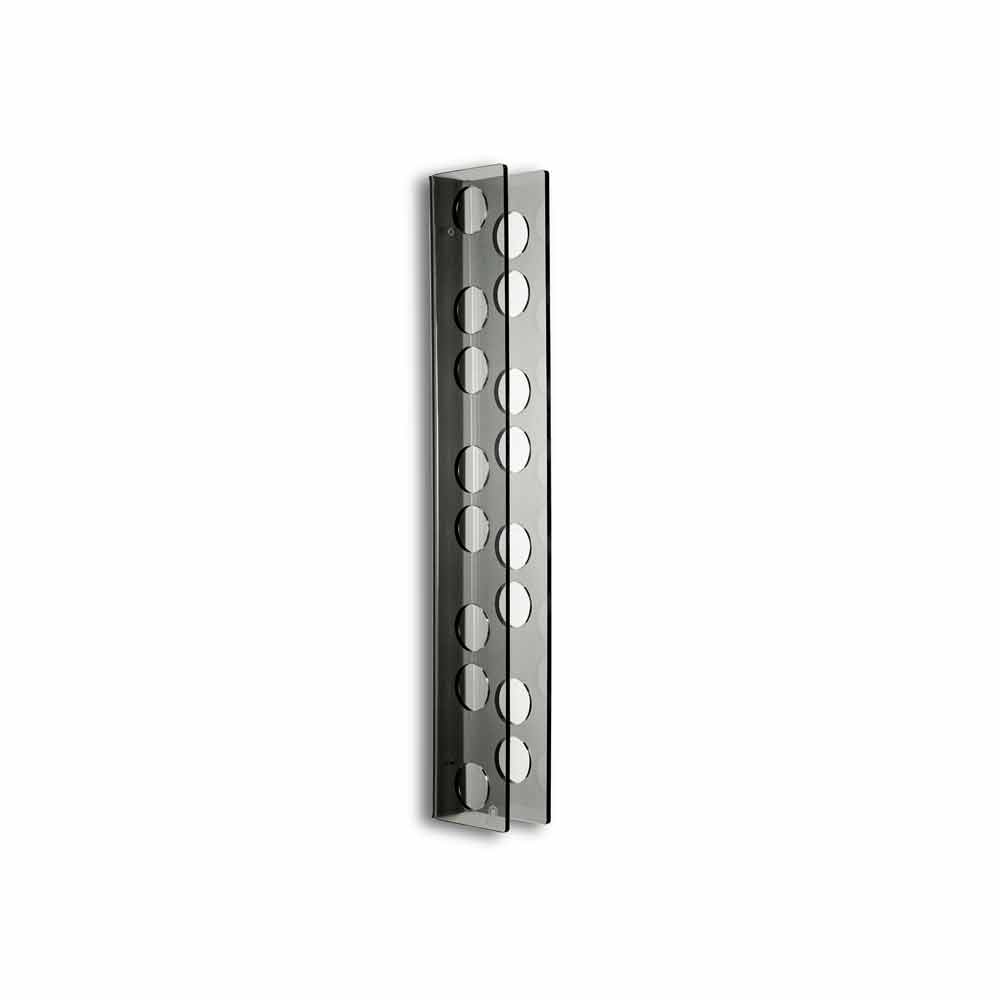 Modern wall fixed bottle holder Baby Small L6xH60xP11cm, fumé finish BabyBig is made of 100% PMMA from vergin polymers. It can store 8 standard fine wine and champagne bottle. Modular structure.