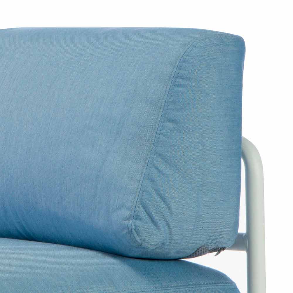 Its structure is made of metal painted with thermosetting powders ideal for the creation of outdoor products while the seat and backrest cushion are made of 100% dyed acrylic fabric. The two materials used to provide the product with excellent solidity and durability over time as well as resistance to all weather conditions, stains, mold and UV rays.