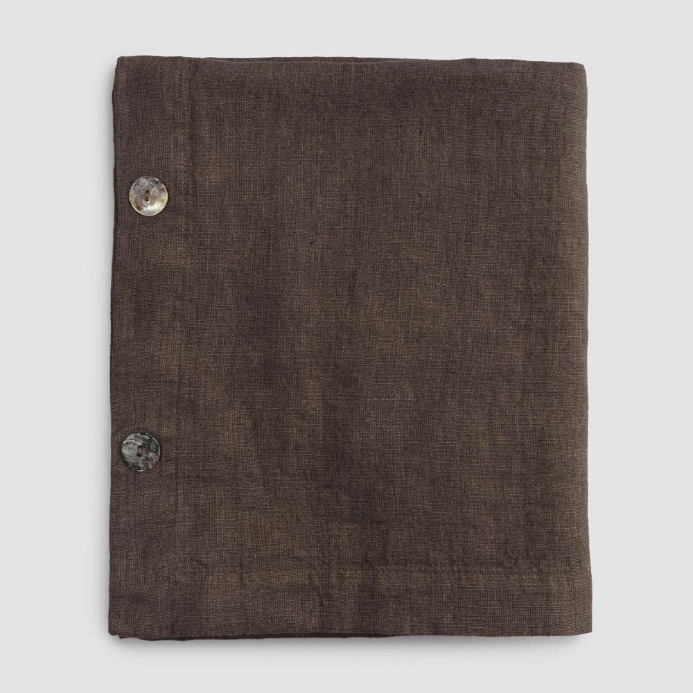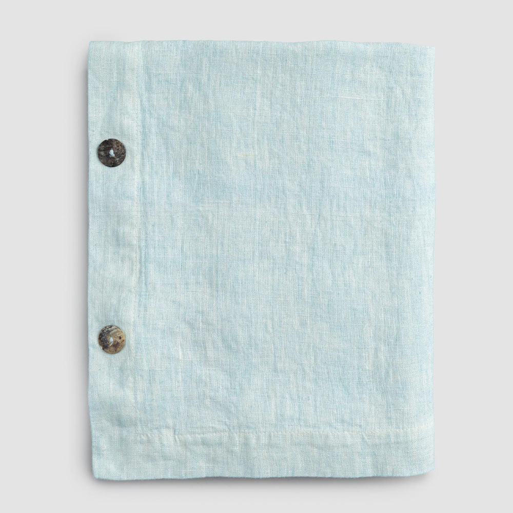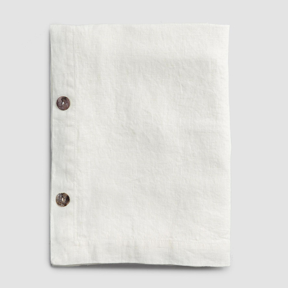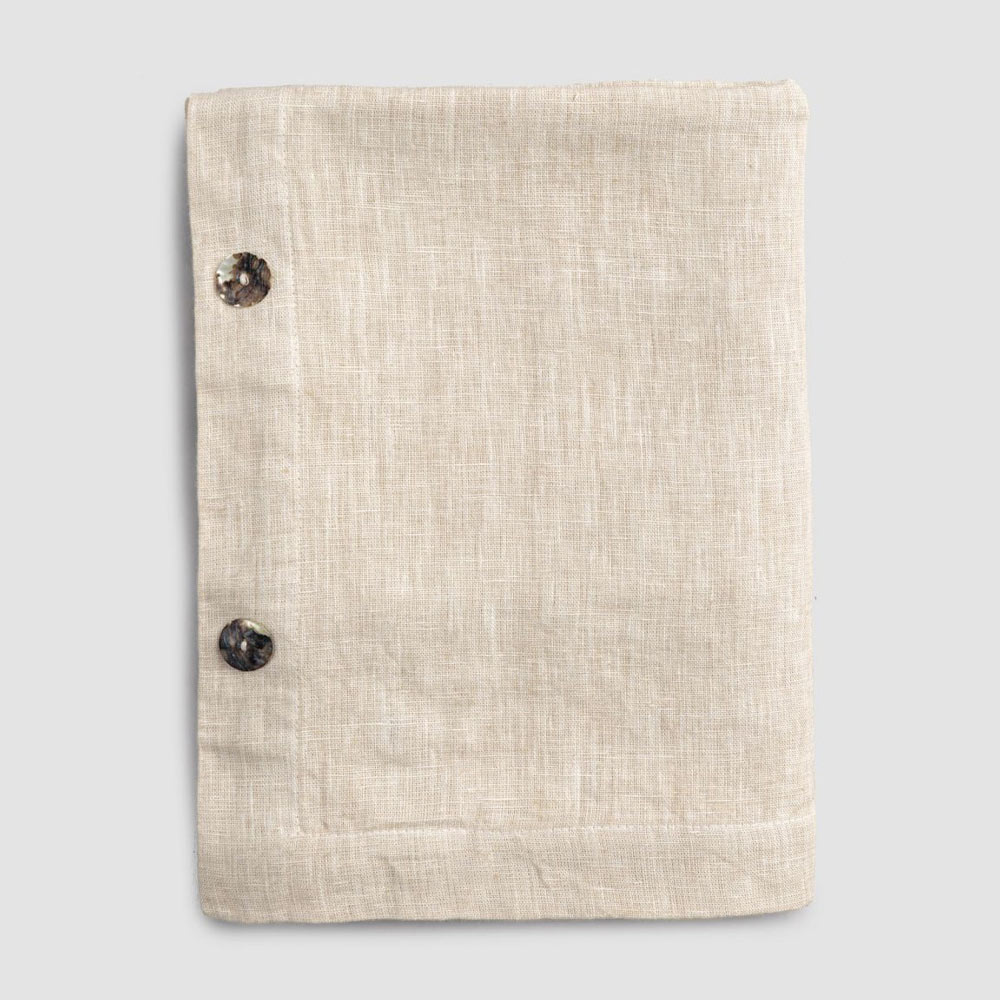 Modular rectangular linen tablecloth with mother-of-pearl buttons, handmade quality made in Italy.