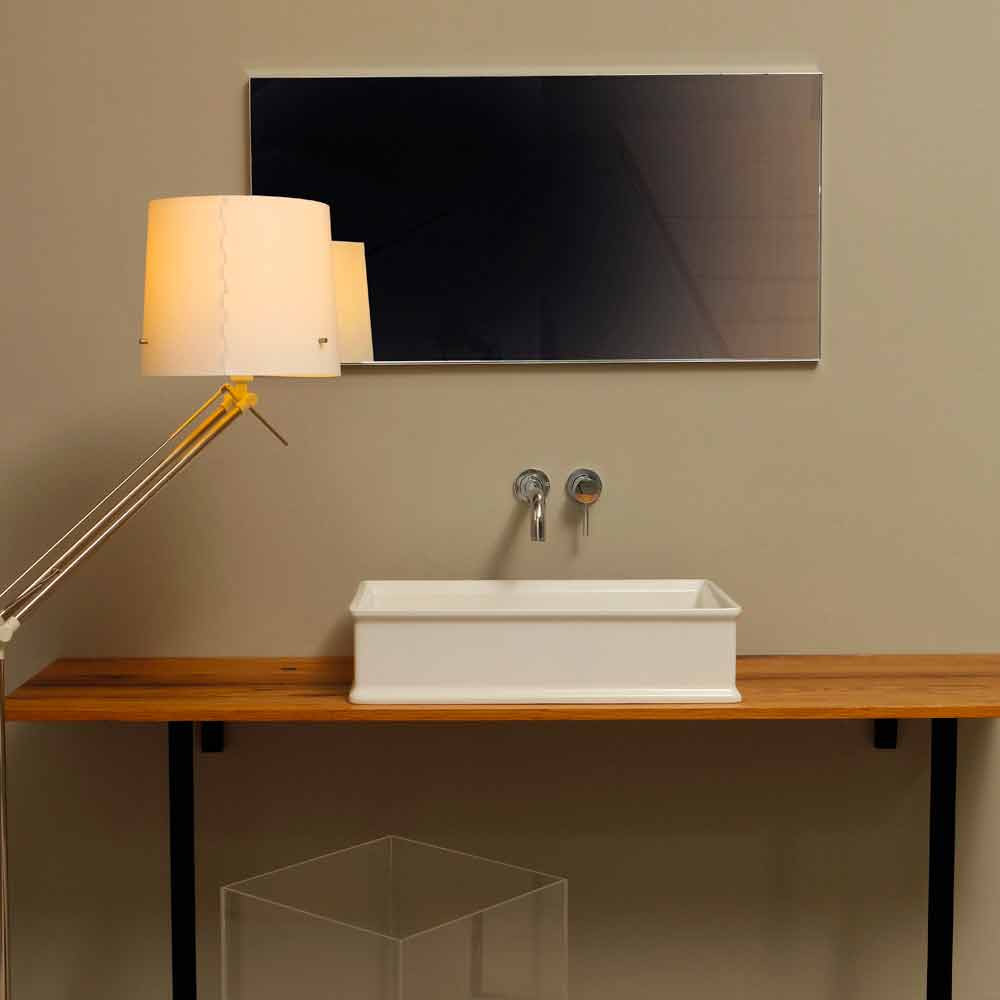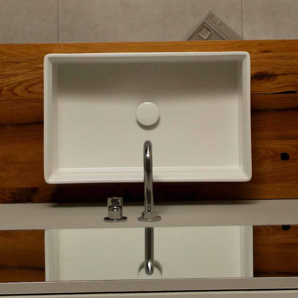Countertop washbasin with a neoclassical ceramic design made in Italy Debora Washbasin with a discreet neoclassical flavor, an interpretation purified by all the sinuous and troubled shapes of other washbasins. Light moldings give it elegance and refinement. This sink can be customized choosing between different finishes and decorations: to request information and / or a personalized quote write to clienti@viadurini.it. NB: For cleaning it is strongly recommended to use non-aggressive products, which may alter or damage the finish. Taps are not included in the price.