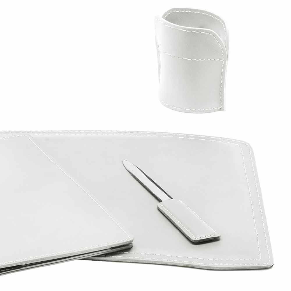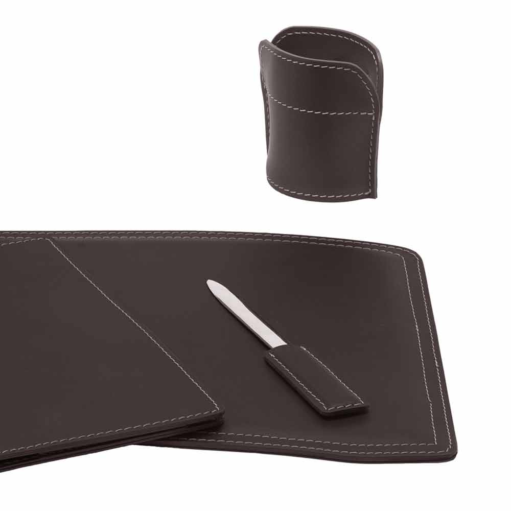 Desk accessories in bonded leather, set consisting of 5 pieces, Made in Italy Brando