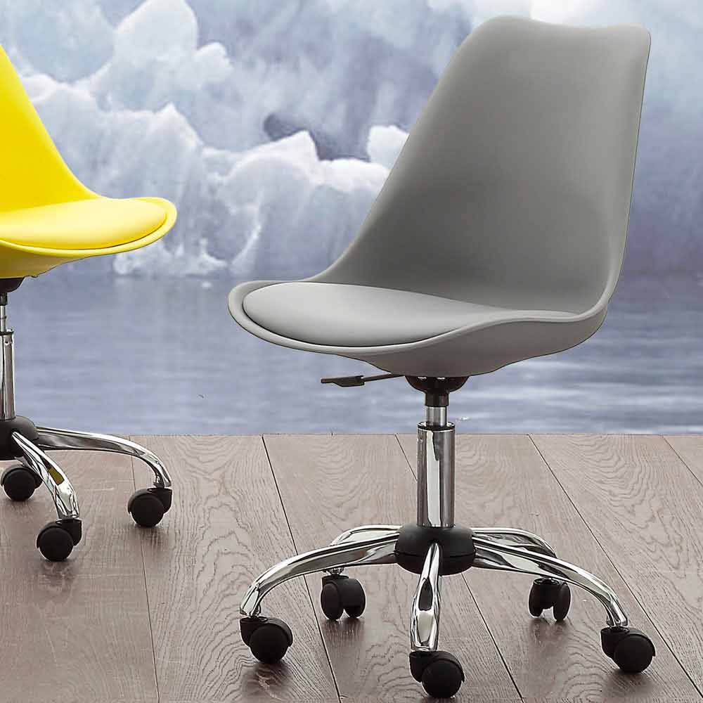 The Loredana office chair is ideal for ensuring maximum comfort during working hours thanks to its seat with gas lift. Produced with a polypropylene seat and made comfortable by an eco-leather pad matching the seat and chromed metal base with wheels.