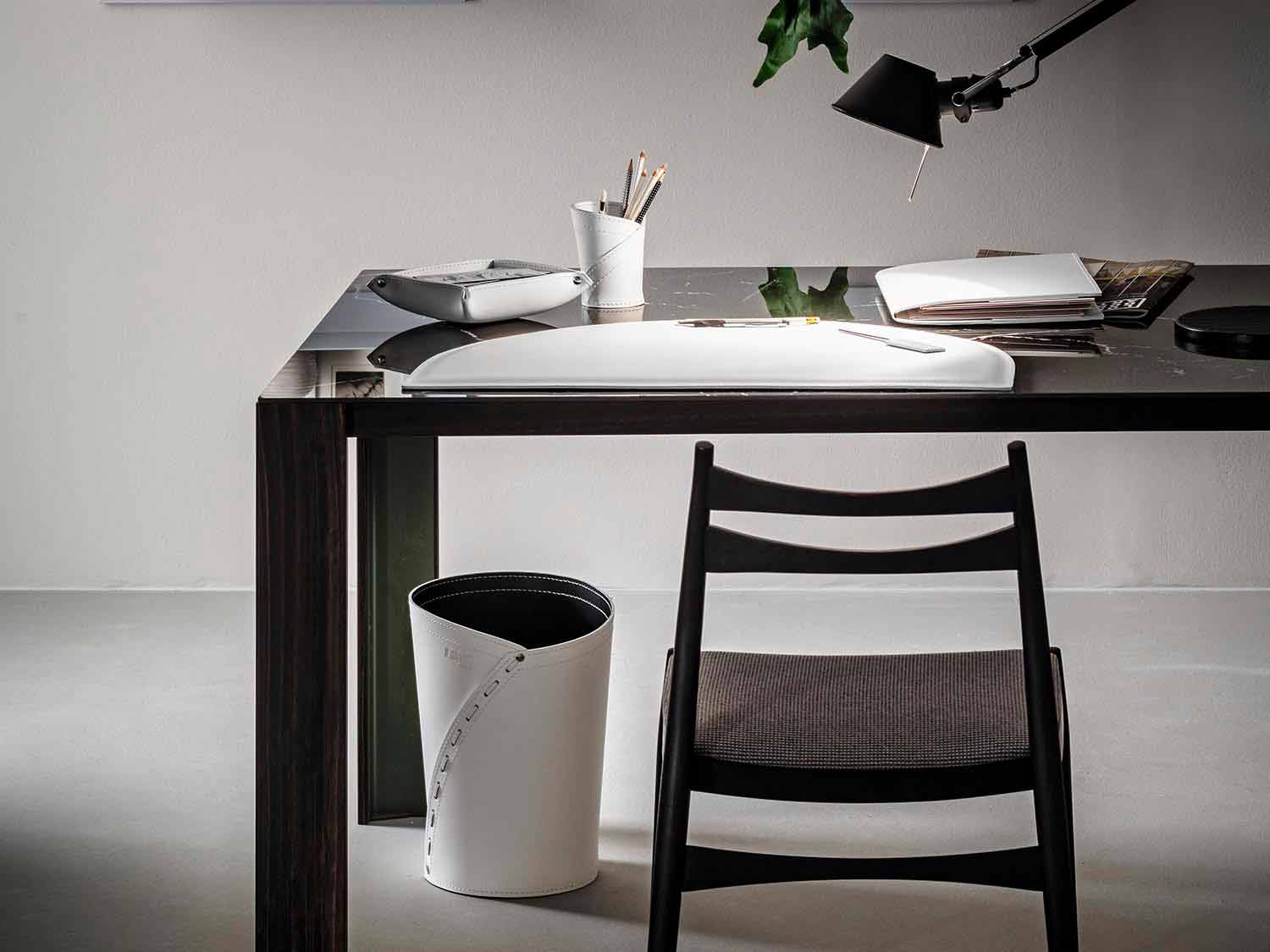 The Meduna office composition is a functional but at the same time decorative piece of furniture . The made in regenerated leather in Italy by skilled craftsmen specialized in leather working. Meduna includes: