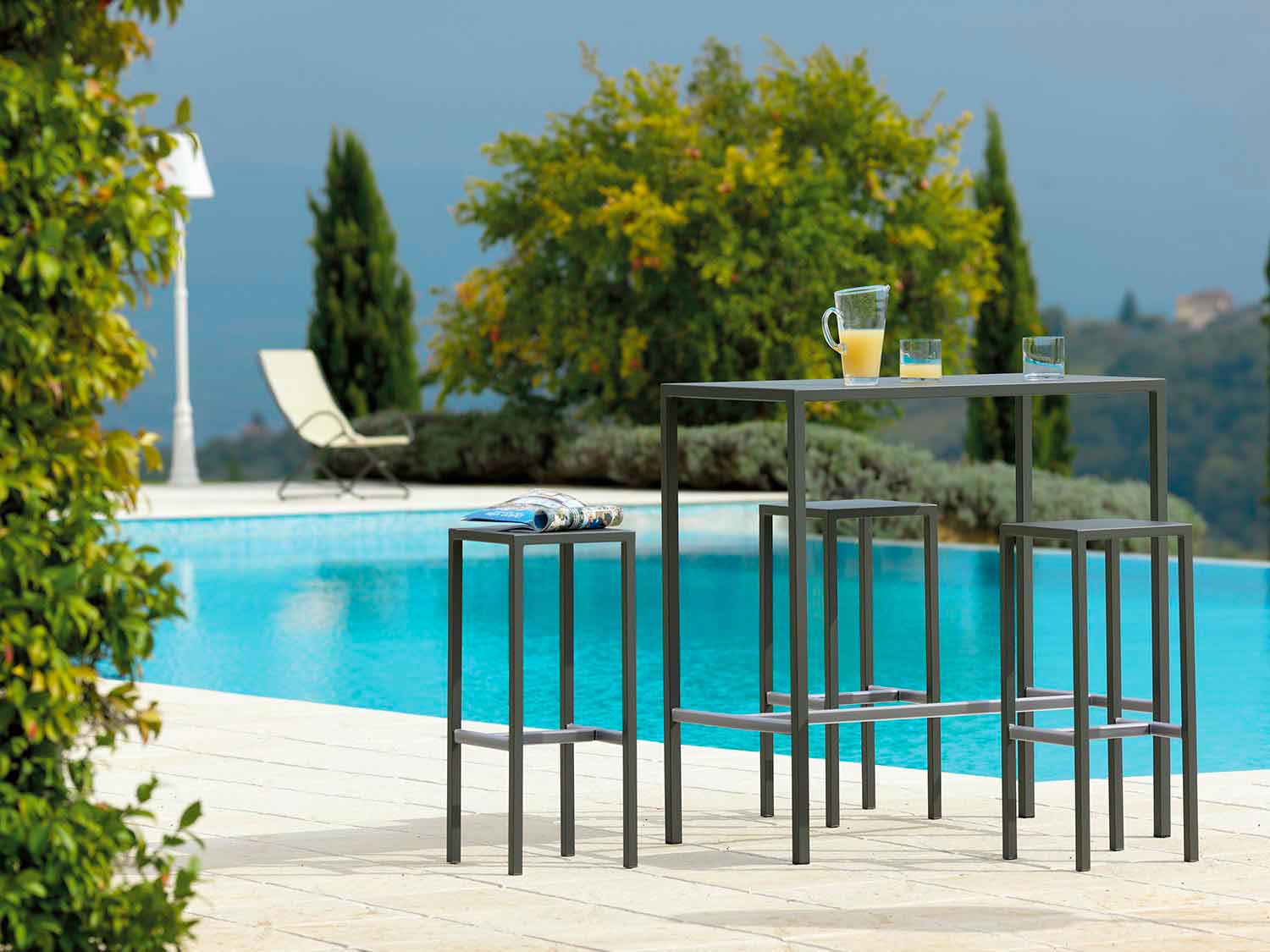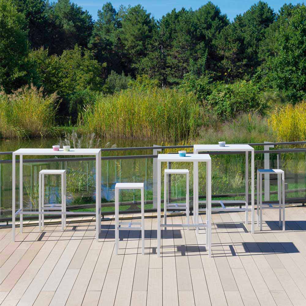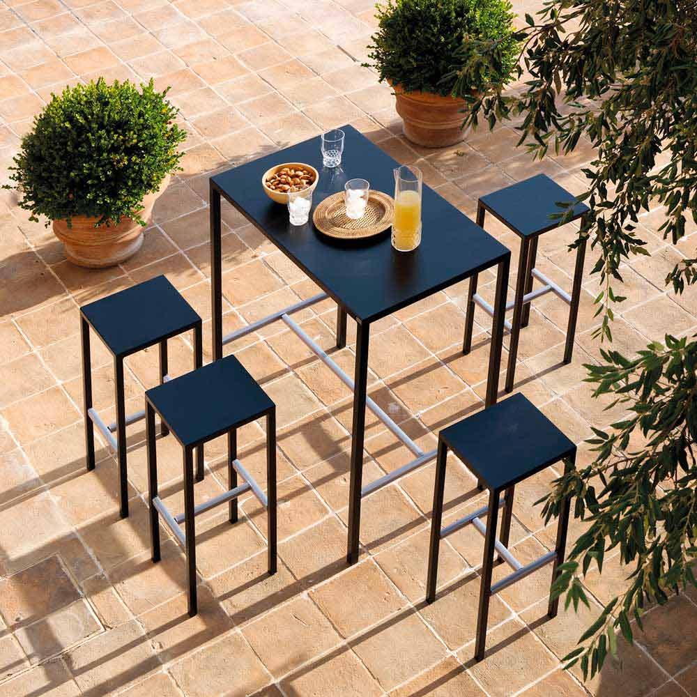High bar stool for outdoor in powder coated metal Made in Italy.