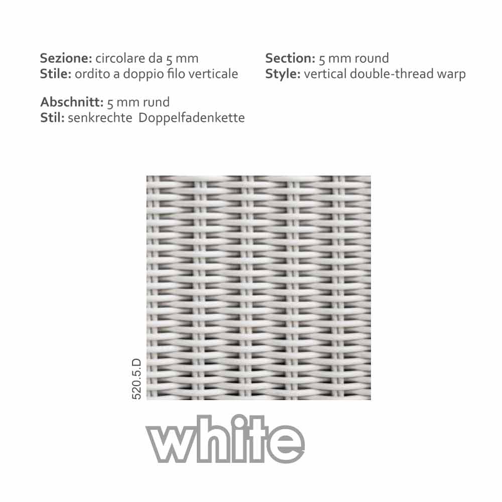 Aluminium frame covered with round handwoven polyethylene (5 mm), available in the colours white or honey.