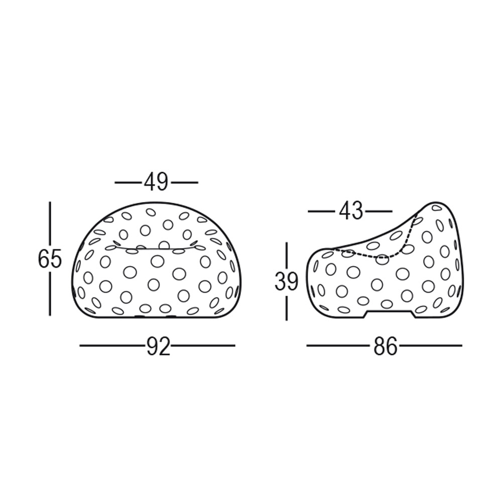 Garden armchair, made in Italy, in opaque white polyethylene complete with colored RGBLED light kit for outdoor use. A furnishing solution characterized by comfortable and modern lines which, together with the lighting with LED light, make it the perfect combination of functionality and design. Its matte finish makes it particularly resistant to the sun, shocks and heat as well as extremely elegant and with a refined aesthetic. The unique and innovative design that emphasizes the shapes has a great scenic impact and makes it ideal for outdoor environments that need an idea with a strong personality. The perforated surface gives an unprecedented lightness to the armchair, creating spectacular plays of light thanks to the light source inserted inside.