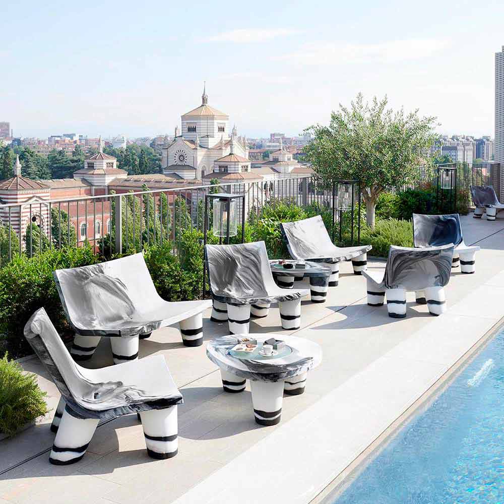 Low Lita Anniversary is a lounge armchair ideal for furnishing outdoor and indoor environments. Made in a special edition, it makes use of sophisticated working processes for the molding of polyethylene for a unique aesthetic result of its kind.