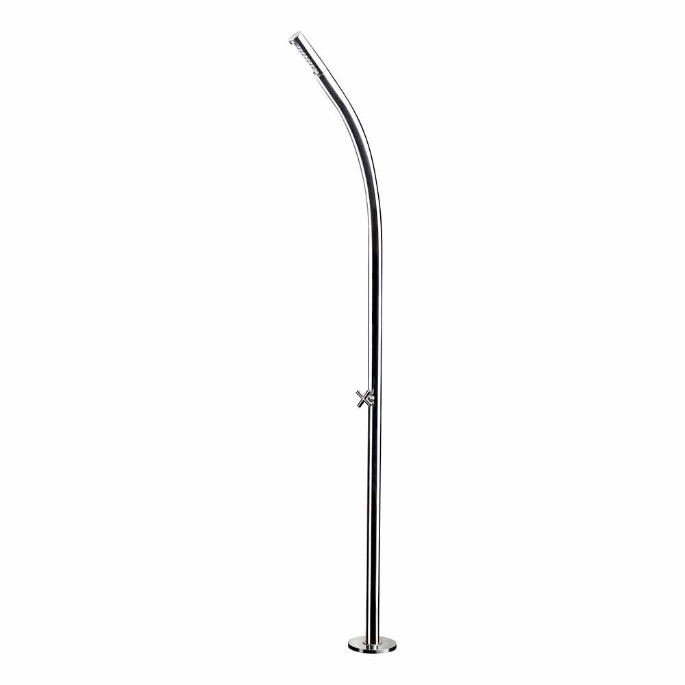 Garden shower columnhandcrafted in Italy with column in polished AISI 316L stainless steel (thickness 2 mm). Ideal for the most varied outdoor areas such as bathing establishments and tourist facilities but also private environments such as swimming pools and gardens, this outdoor column only delivers cold water allowing you to enjoy a wonderful refreshing shower during particularly hot and sunny days. The idea comes from a 100% Italian production which, thanks to the use of precious raw materials , allows to give life to an artisanal creation with high technical performance able to offer the perfect combination of reliability and design. The essentiality of its lines is increased by the built-in shower head that makes the style of this outdoor furnishing accessory even more original and avant-garde, helping to enrich the aesthetics of the surrounding environment with an extremely modern touch and with unrivaled quality.