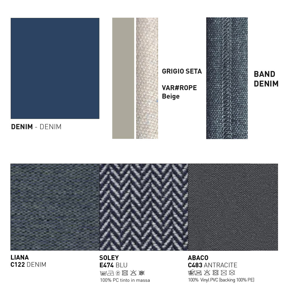 denim foot, beige VAR # ROPE basket, denim band and denim seat cushion;