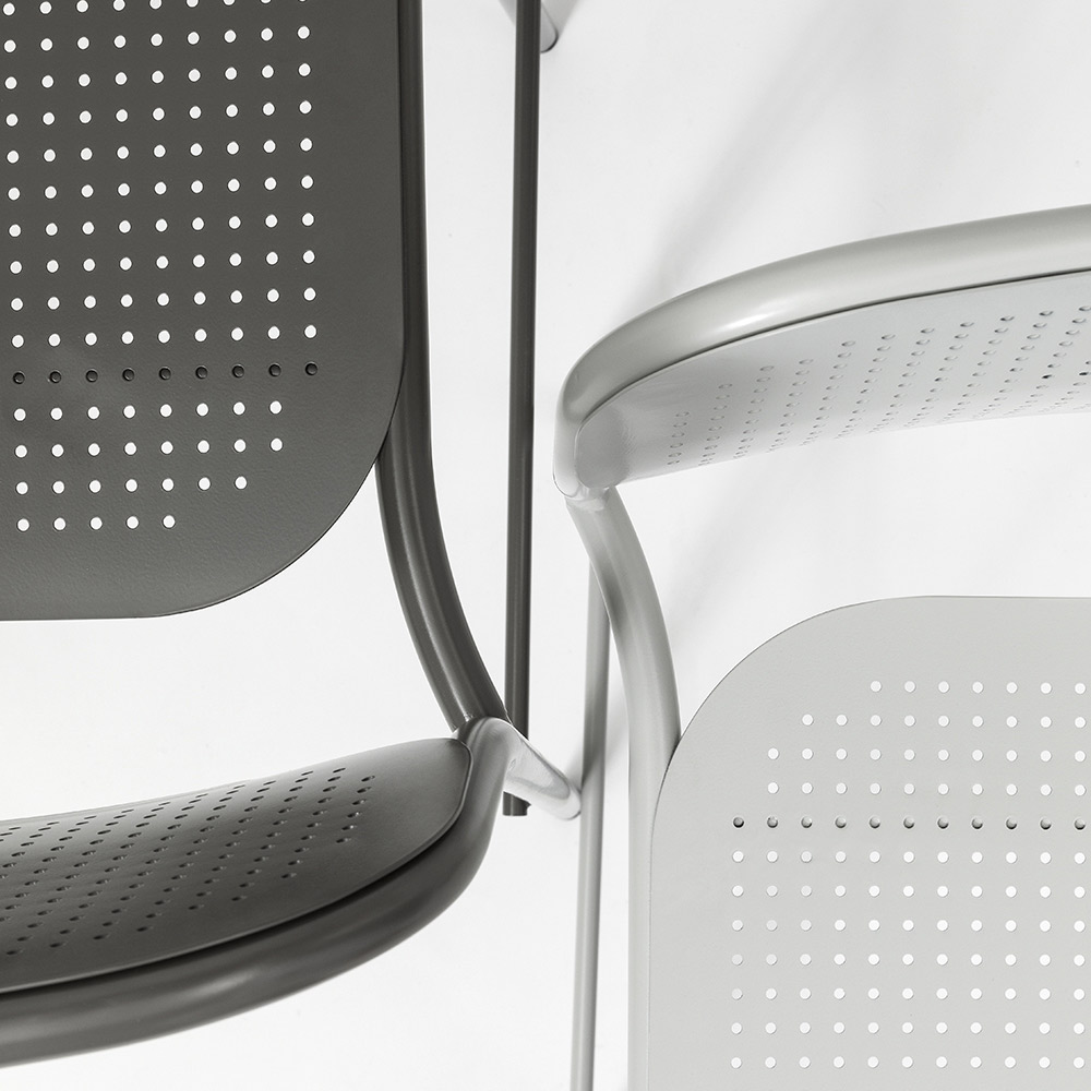 lively and fun aesthetic but also for those who love a more sober and elegant style. The possibility of stacking also emphasizes its functional side and makes it a perfect solution also for contract environments such as bars and restaurants where it is essential to be able to optimize spaces when the armchairs are not in use.