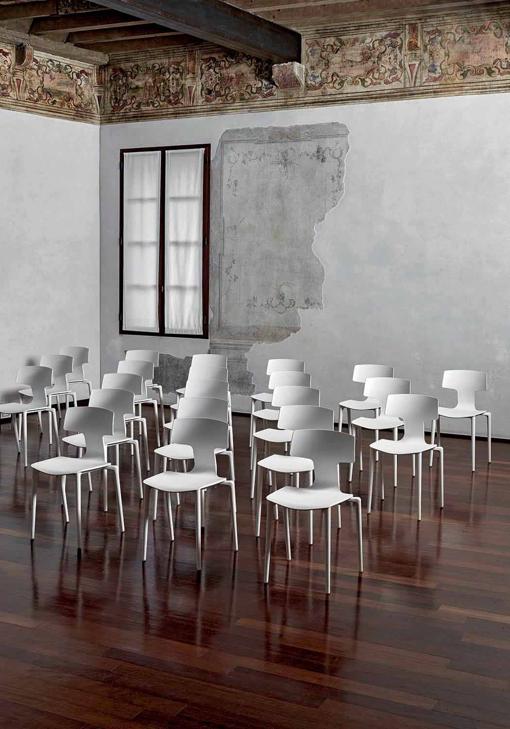 The Claribel chair has a minimal design but which, thanks to the 7 colors available, adapts perfectly to any environment. Thanks to the material used, polypropylene, this chair shows an appearance of lightness which is underlined by its dynamic and unusual features. Claribel is also a stackable chair with up to 6 units to maximize space.