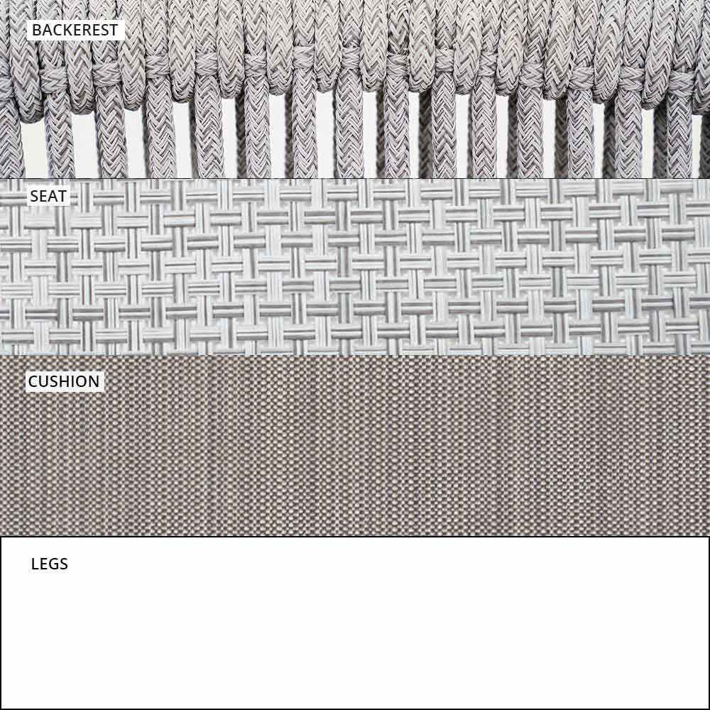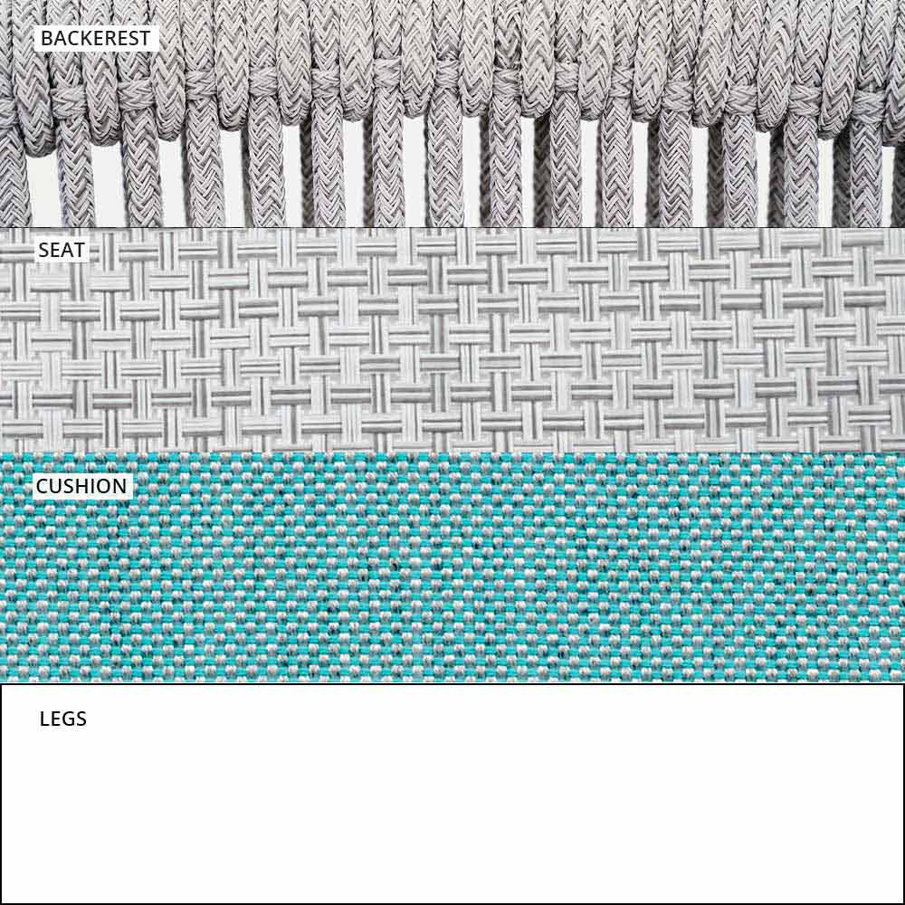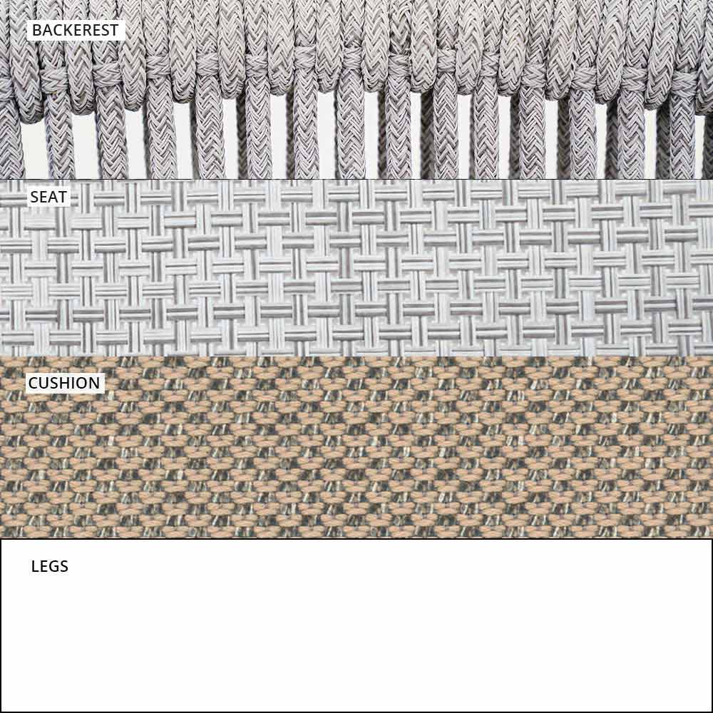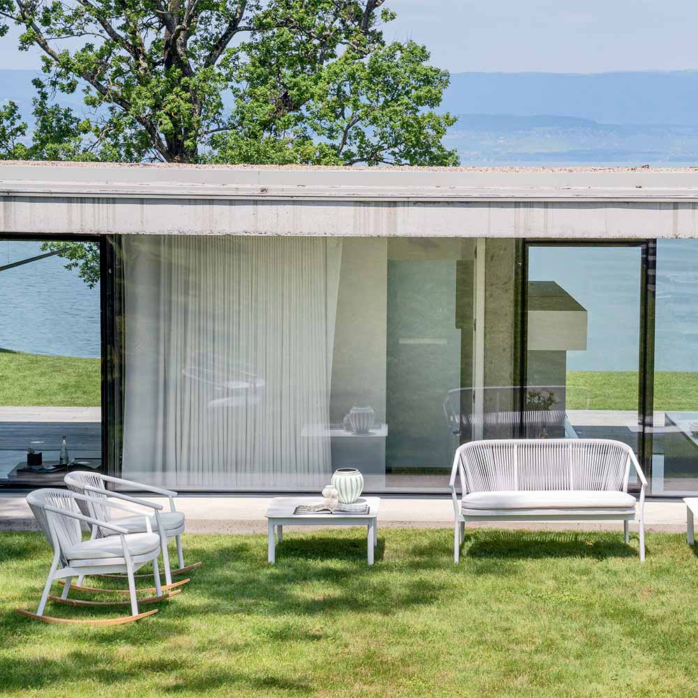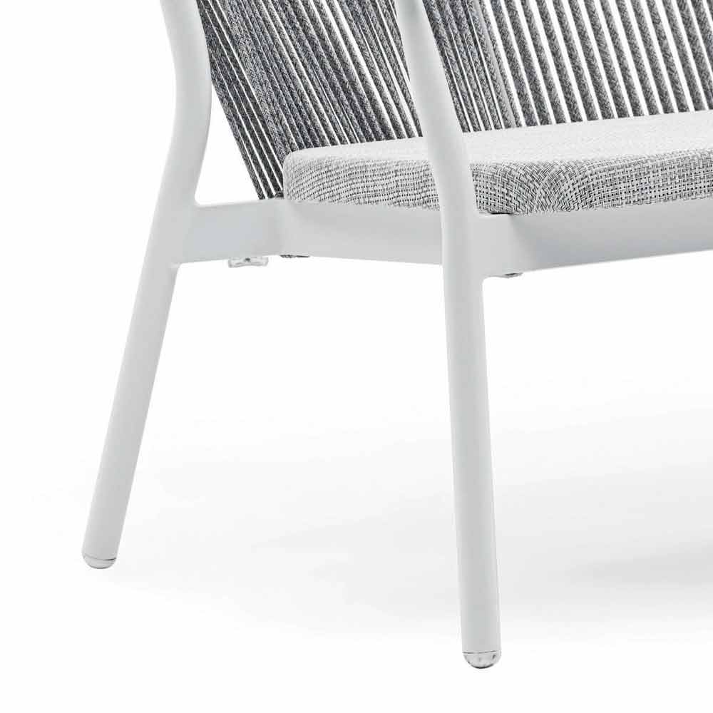 The intertwining of the backrest in VAR # TEX synthetic cord enhances the aesthetics of this sofa designed to enjoy outdoor days in company.