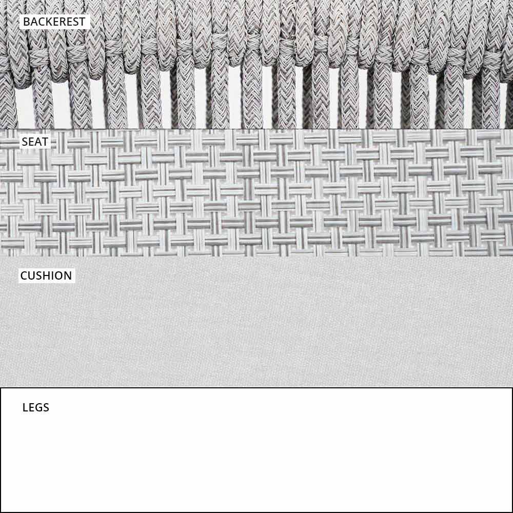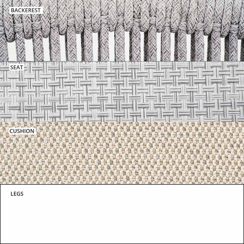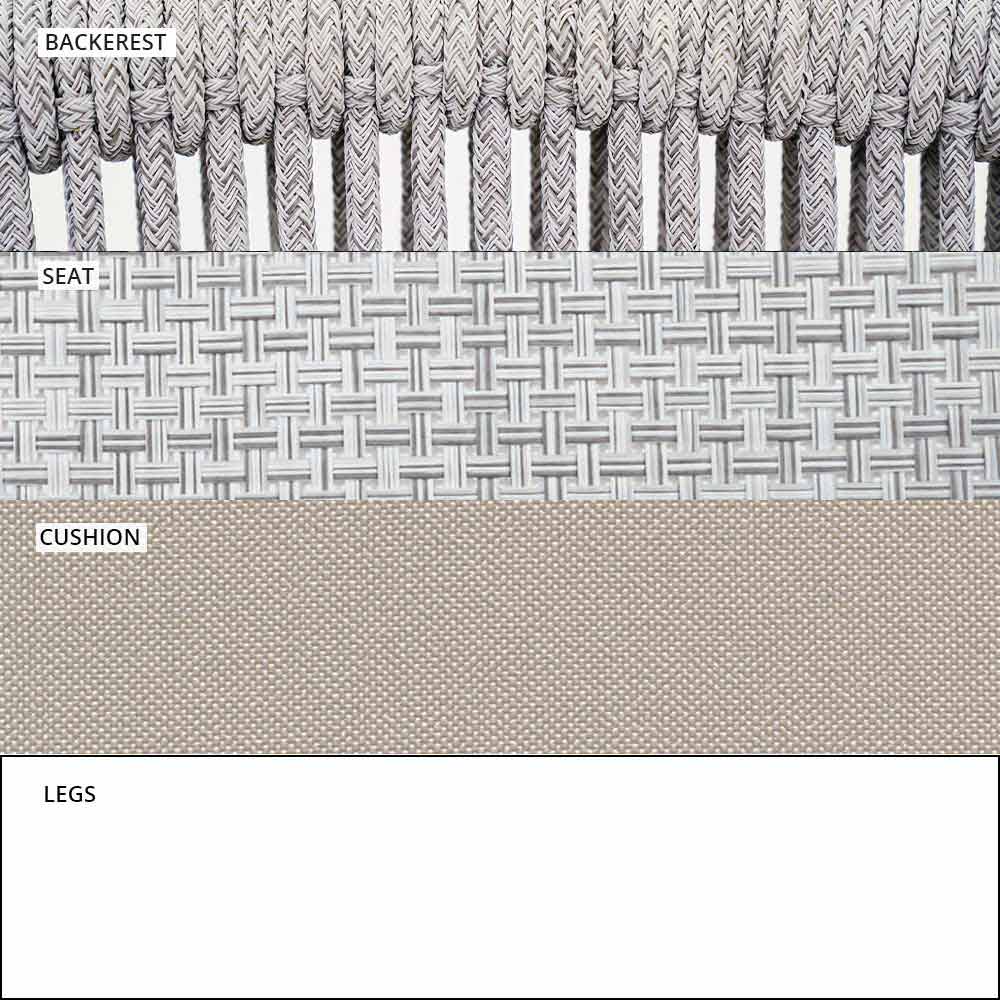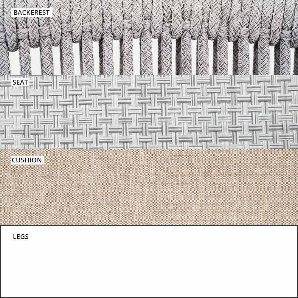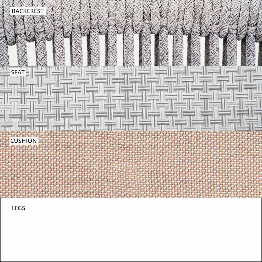 The intertwining of the backrest in VAR # TEX synthetic cord enhances the aesthetics of this sofa designed to enjoy outdoor days in company.