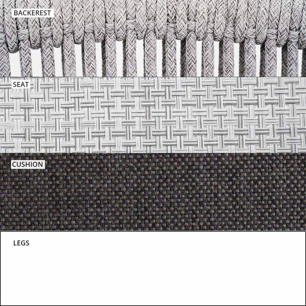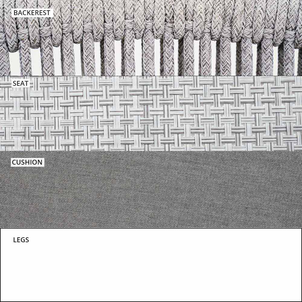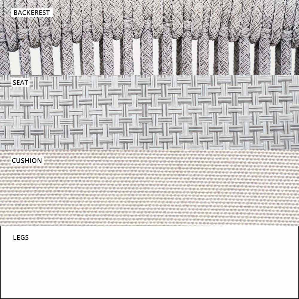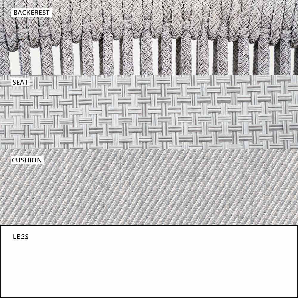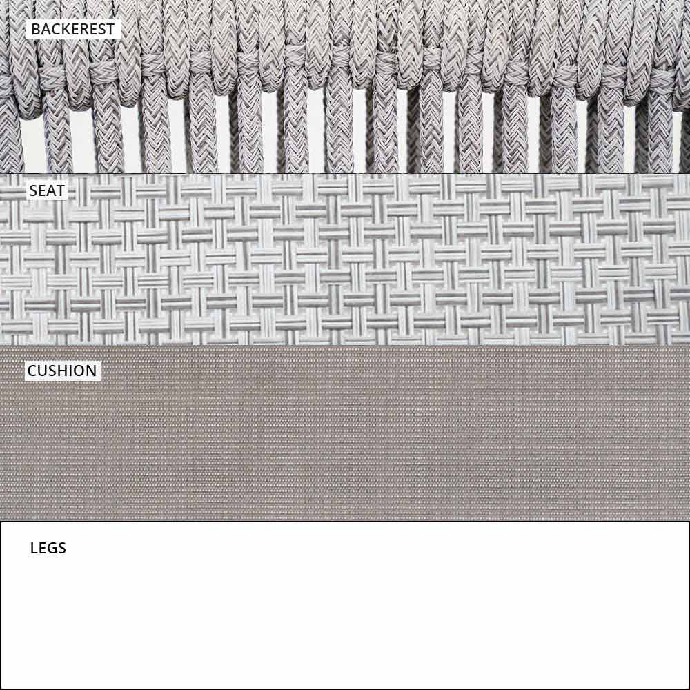The intertwining of the backrest in VAR # TEX synthetic cord enhances the aesthetics of this sofa designed to enjoy outdoor days in company.