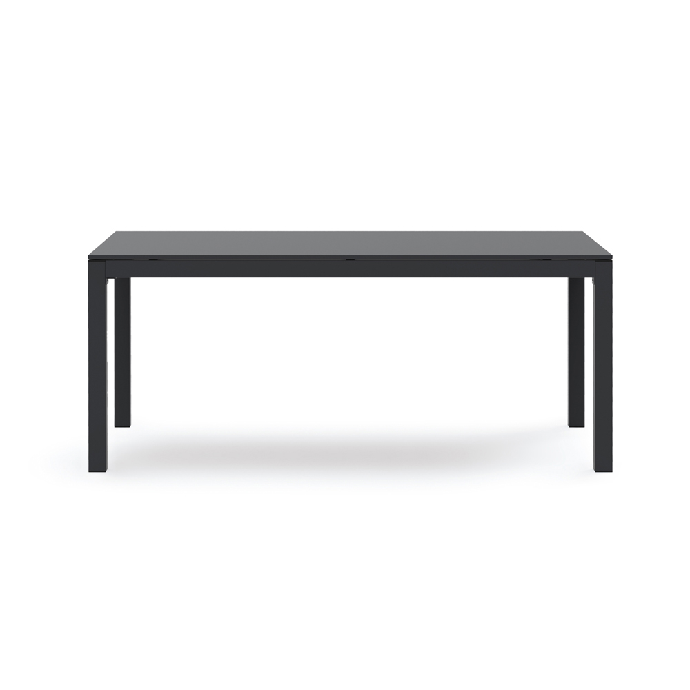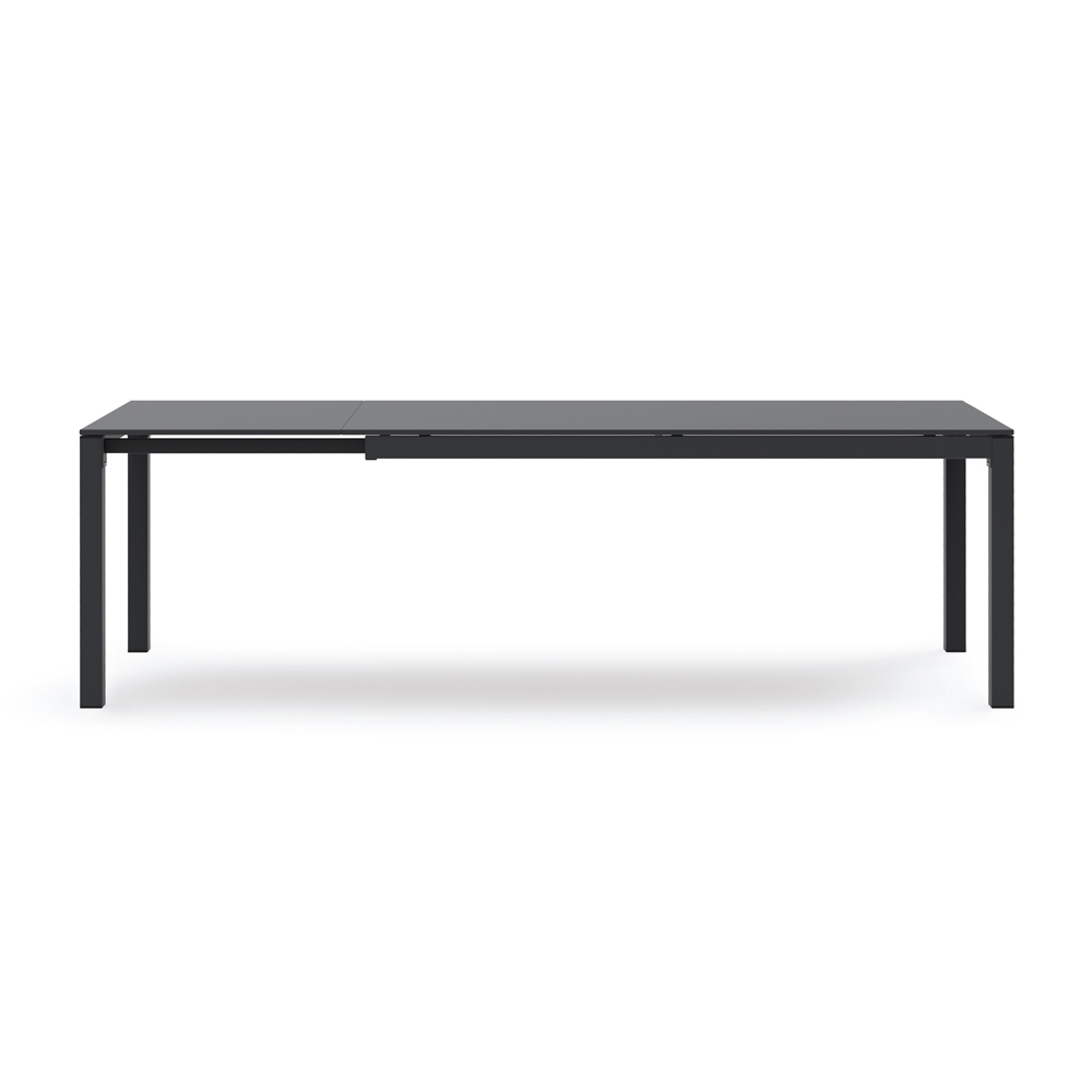 Outdoor dining table with self-leveling top extendable up to 250 cm entirely made in Italy in colored metal . A furnishing solution that combines practicality and contemporary taste in a product with a current aesthetic , perfect in any furnishing context. Thanks to the essentiality of its shapes and the versatility of the model available in 2 different sizes, the table lends itself to responding to the most varied needs, integrating into domestic or contract environments with elegance and style .